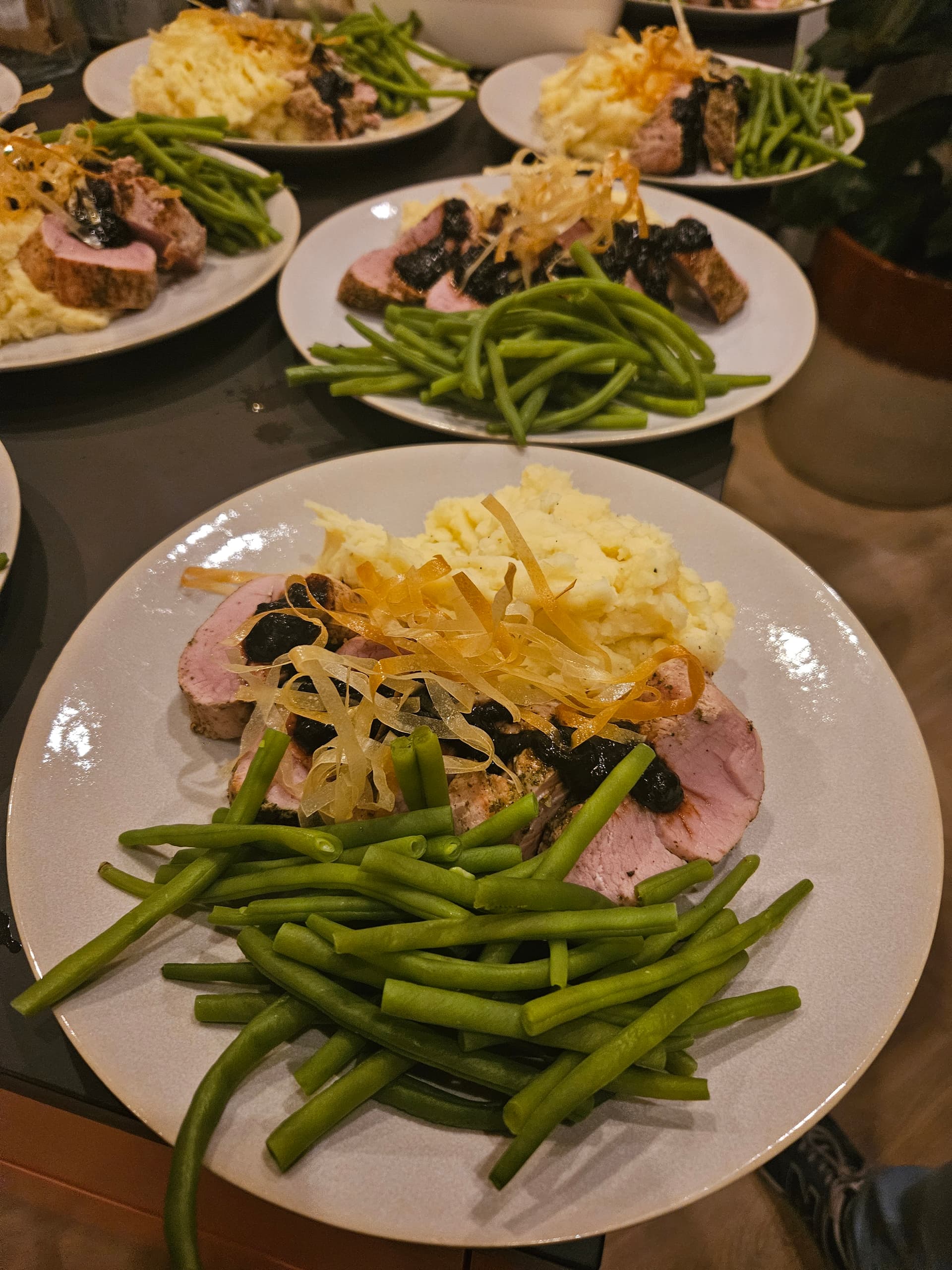 En dat was een groot succes, vlees was perfect gegaard en die jus erbij is echt heerlijk. Ik heb het geserveerd met aardappel-pastinaakpuree en haricots vert. Was allemaal heerlijk.