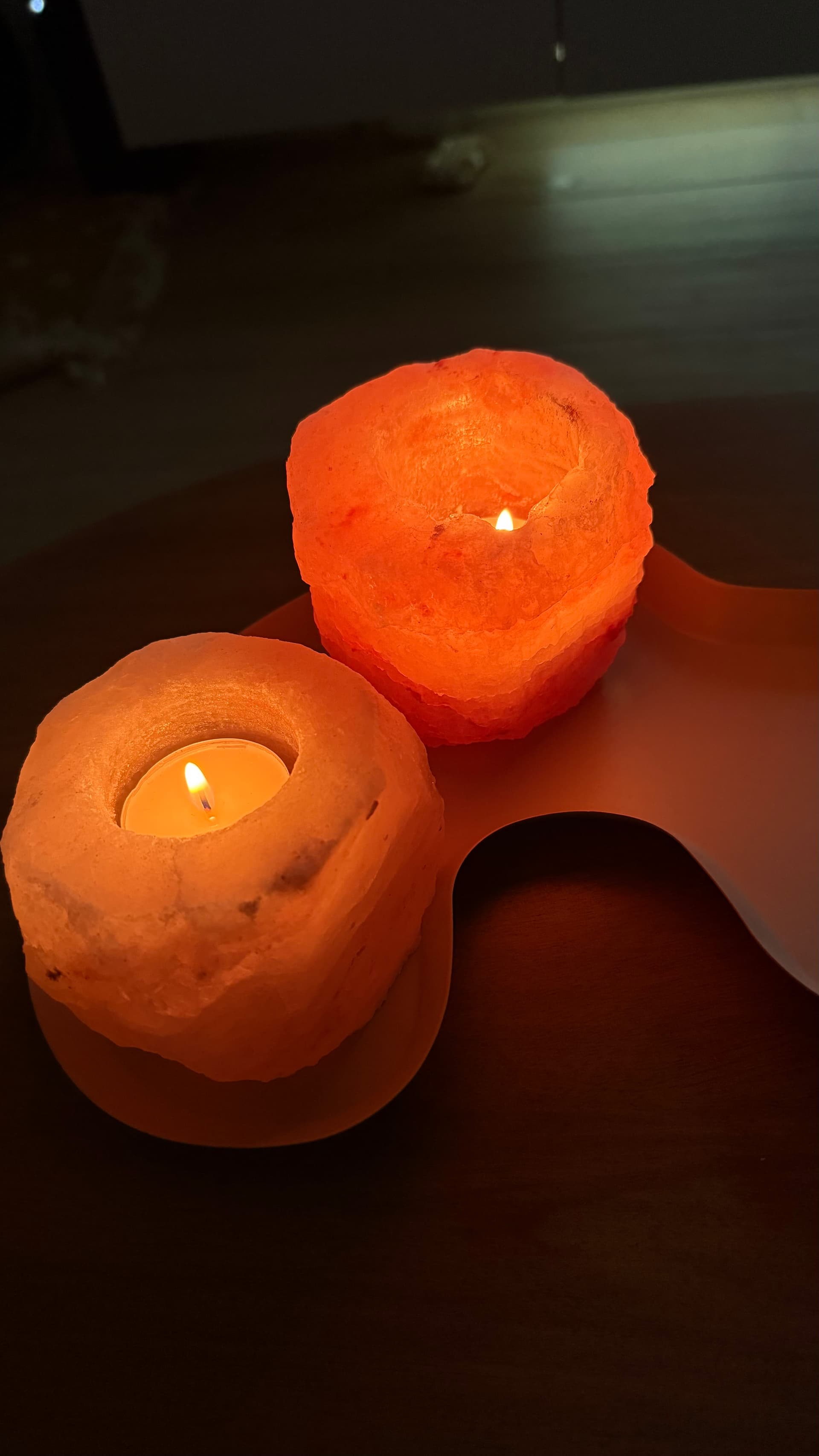Waxinelicht houders van natuursteen/zoutsteen? Geen idee, maar zijn prachtig! 1,50€ per stuk