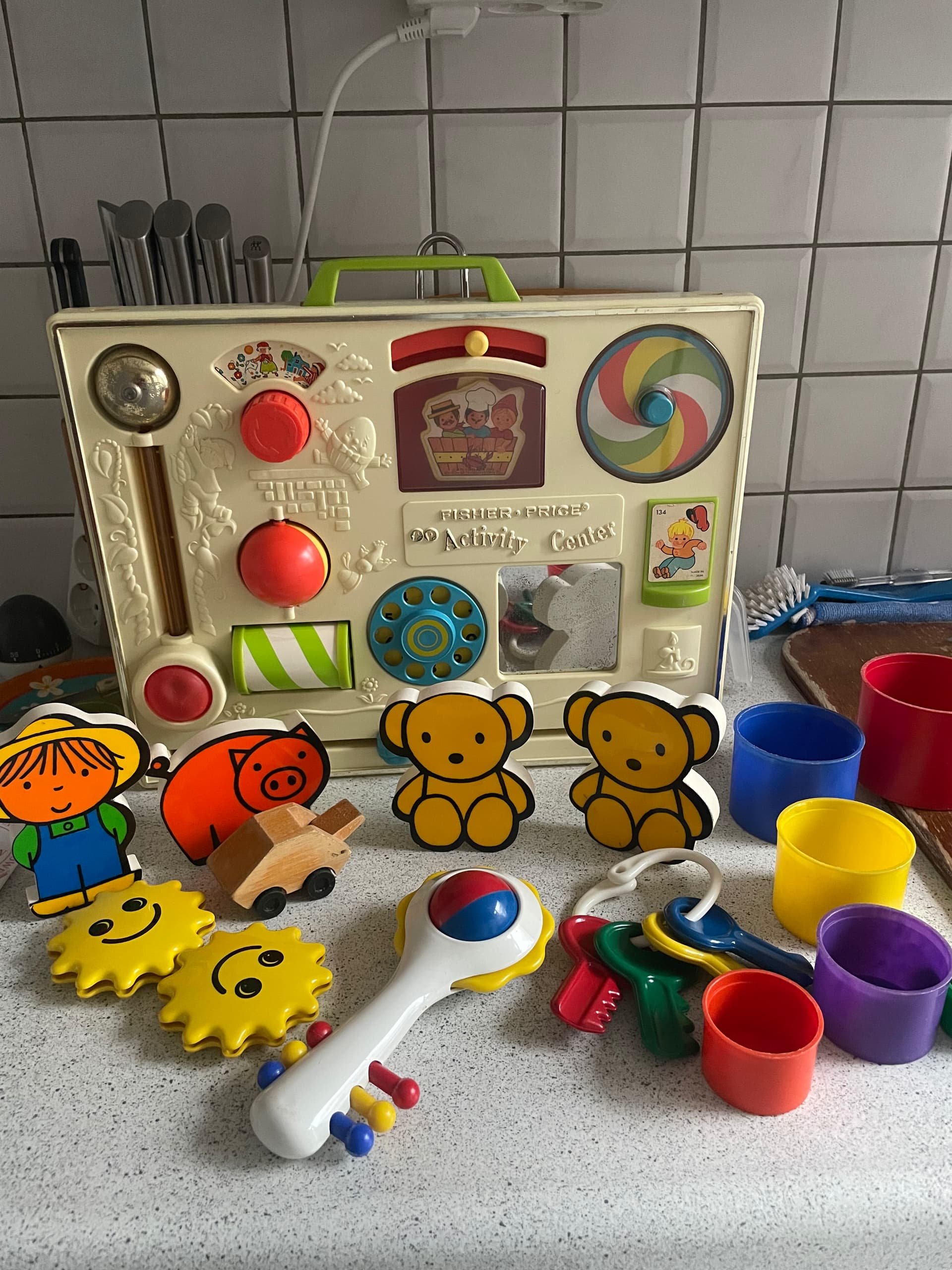 Ooh wat leuk dat speelgoed hierboven! Die sleutels en dat activity center herinner ik me ook van vroeger!