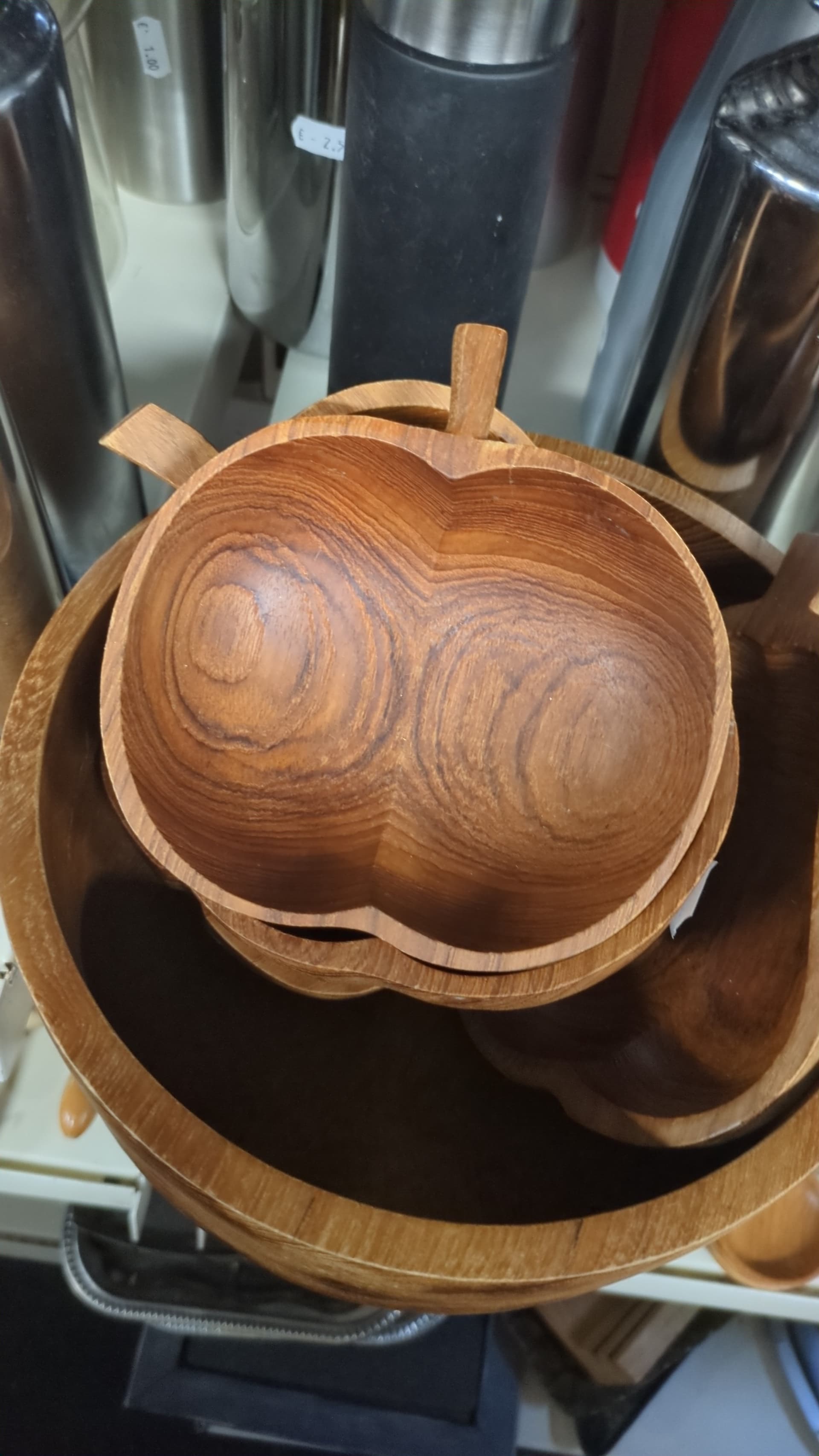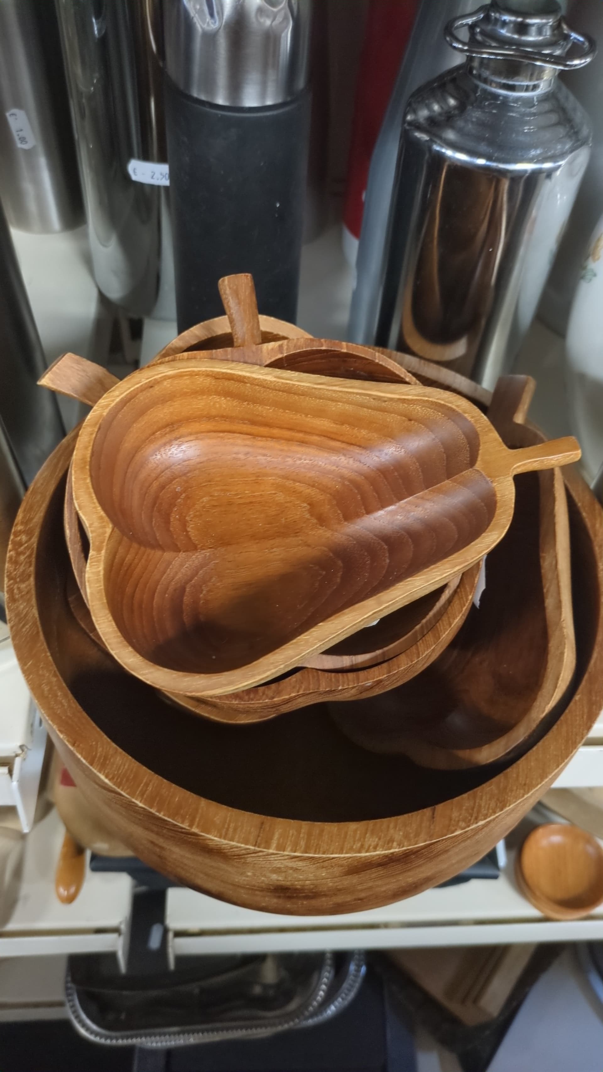 Een hele.set met teakhouten schaaltjes in de vorm van een peer of appel gevonden vandaag. Heb mezelf beheerst en er maar 1 meegenomen in de vorm van een peer. Weet nog niet wat er ingaat maar ik vond m heel schattig. Zet m waarschijnlijk op mn nachtkastje voor elastiekjes / lippenbalsem/crème ofzo.