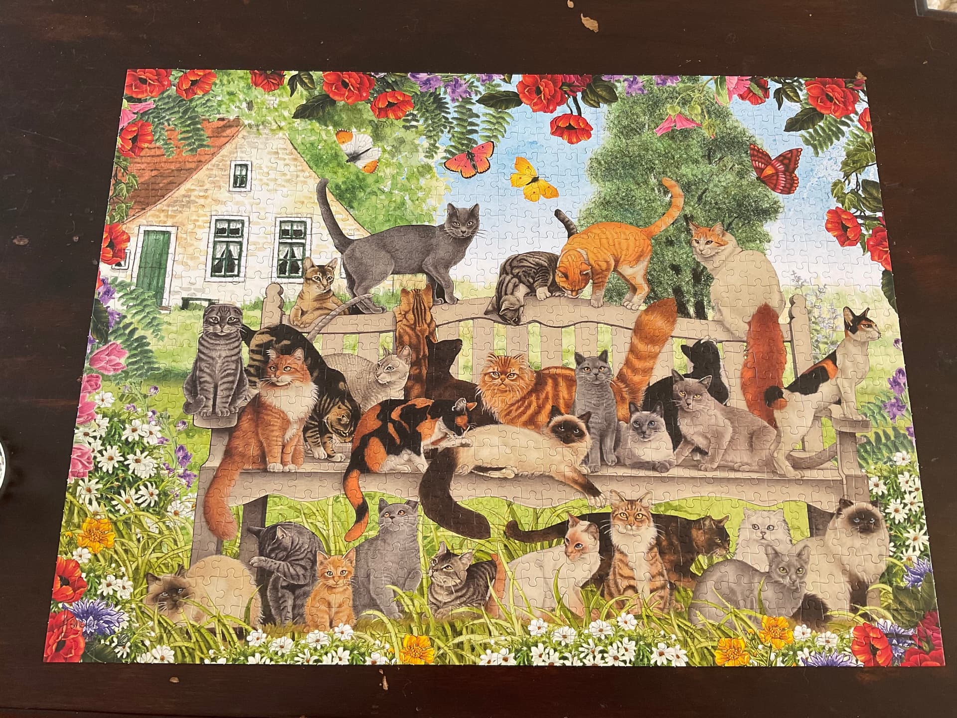 âDe kleinste puzzel ter wereldâ, maar ik noem hem liever de kutste puzzel ter wereld. De details waren vaak zĂł klein dat het eeuwig kostte om al dat groen neer te leggen. Vooral de rand en de bomen waren een pain in the ass. Van sommige stukjes weet ik nog steeds niet of ze wel juist liggen. Als klap op de vuurpijl ben ik een stukje kwijt. Niet dat het me verbaast, want zowel mijn man als mijn kind hebben de puzzel een keer gesloopt (al dan niet expres).