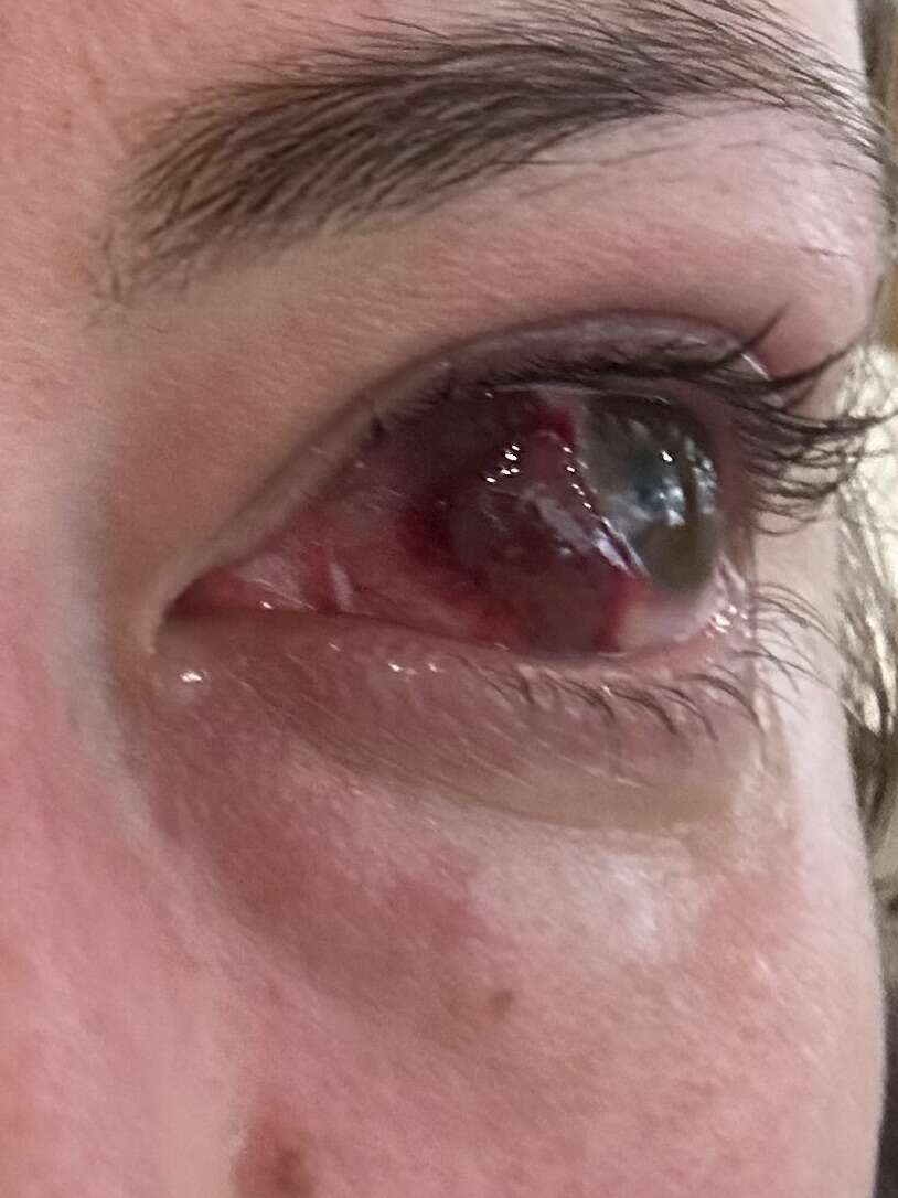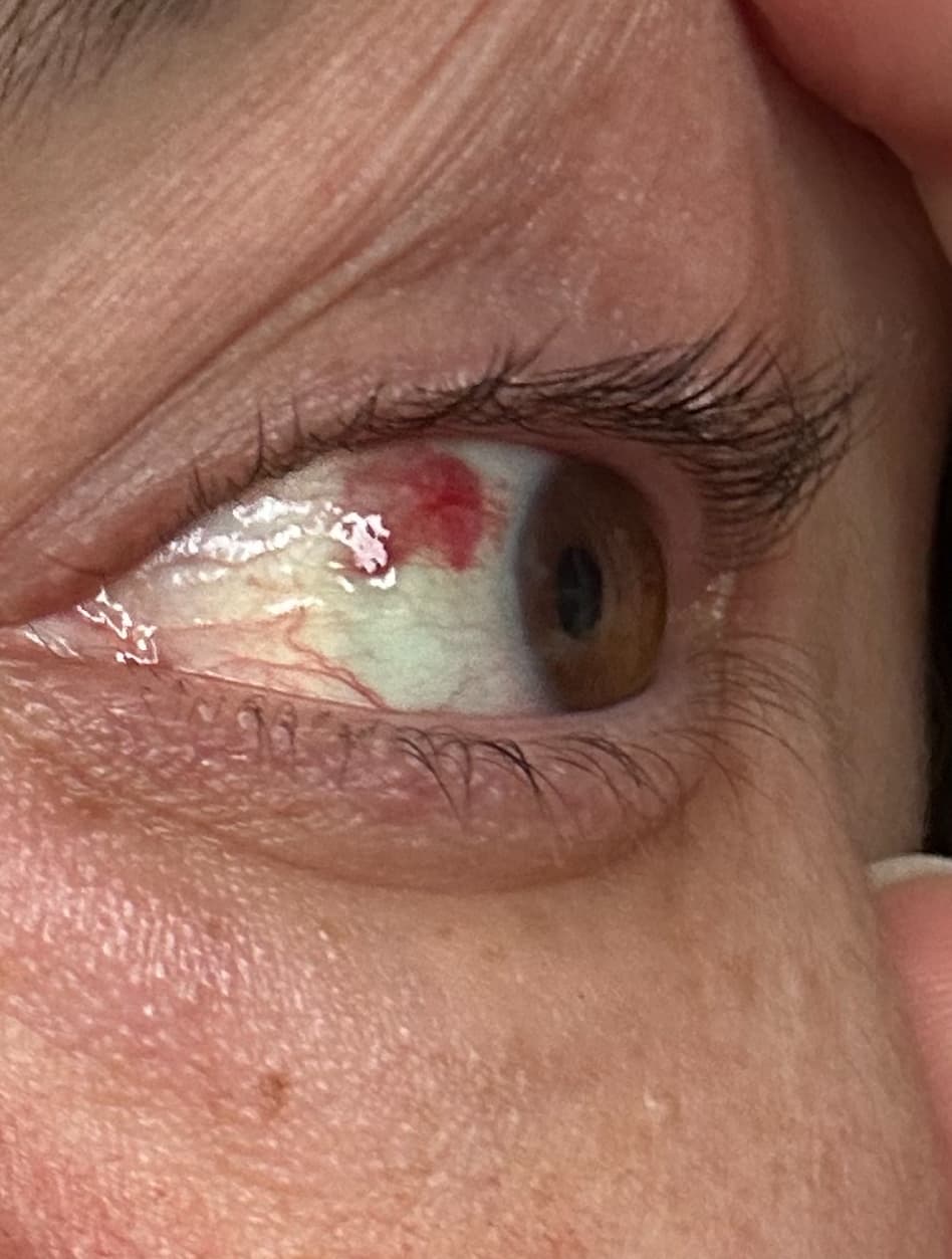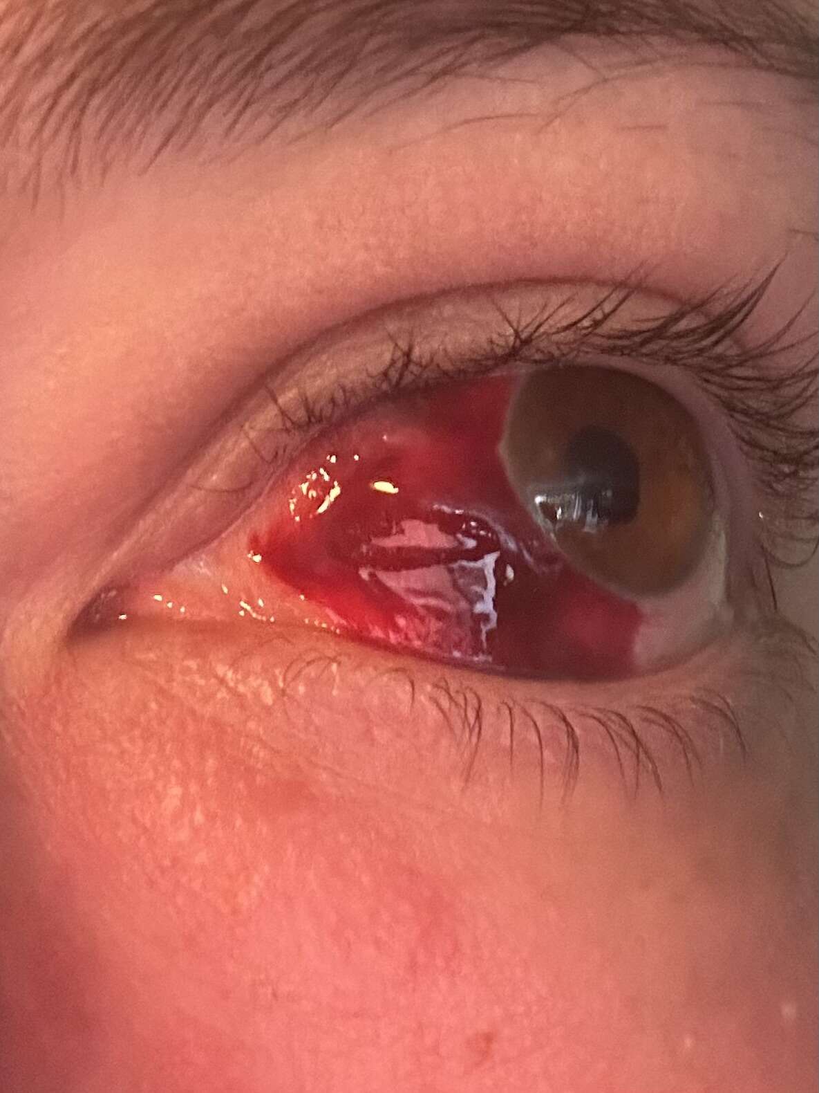 Ik heb bloedvaten op m’n netvlies groeien en die zijn ook nog eens gaan lekken. Daar is wat aan gedaan en daarnaast heb ik een injectie in m’n oog gehad. Bij die injectie is een adertje geraakt en daarom ziet het er zo uit. De vorige keer zag het er zo uit, toen zag het er niet naar uit.