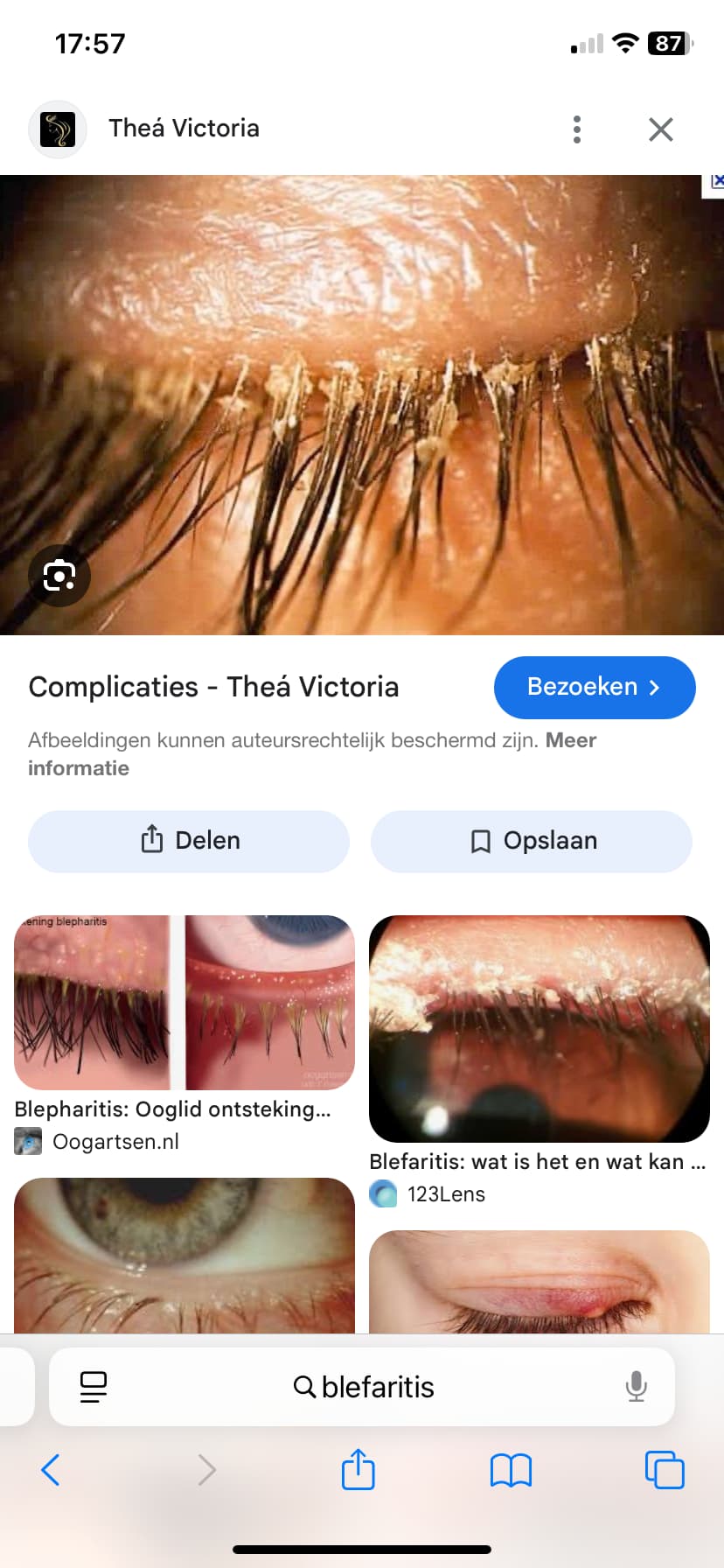 Gisteren uit frustratie 3 pijnlijke wimpers met de pincet eruit getrokken en nu stik minder pijnlijk. Maar nog best wel karbonkel lookje.