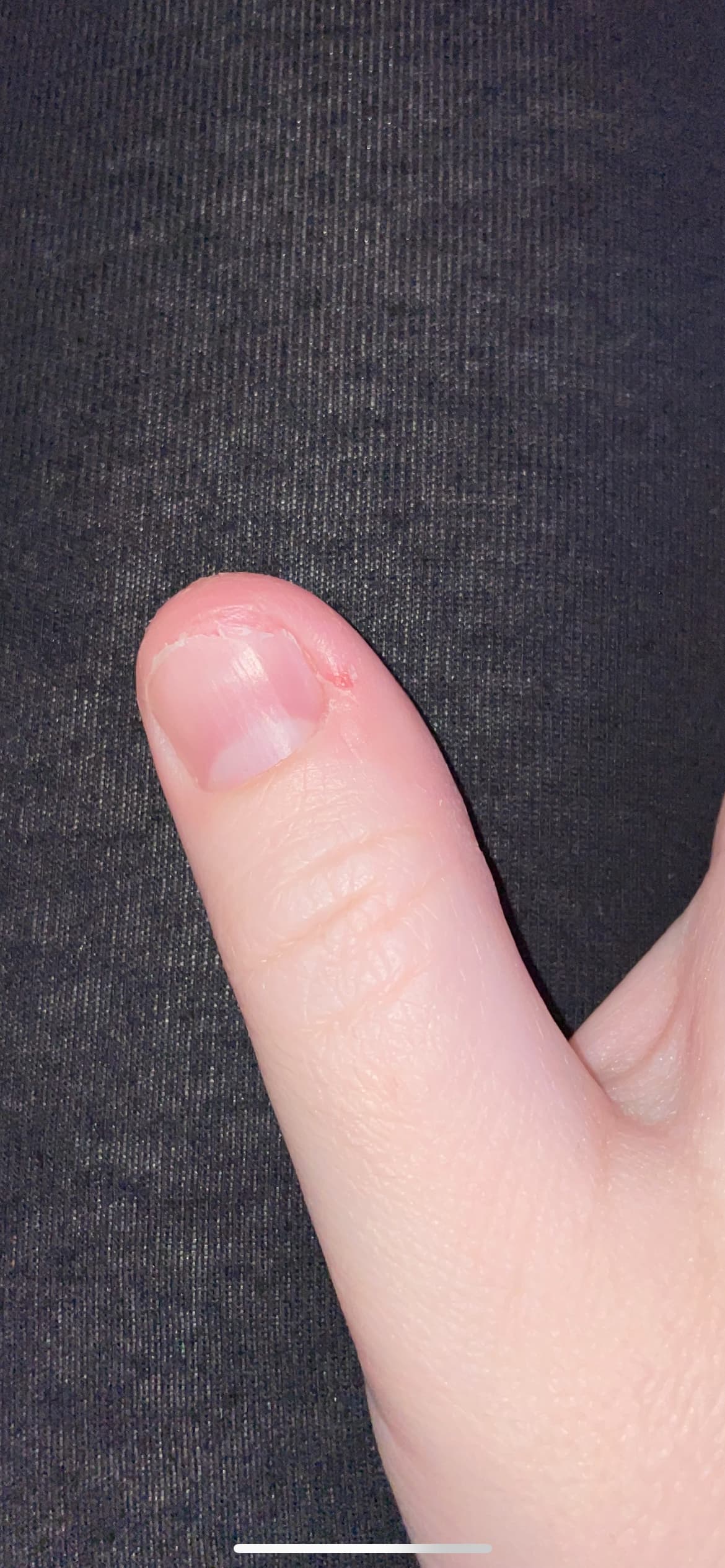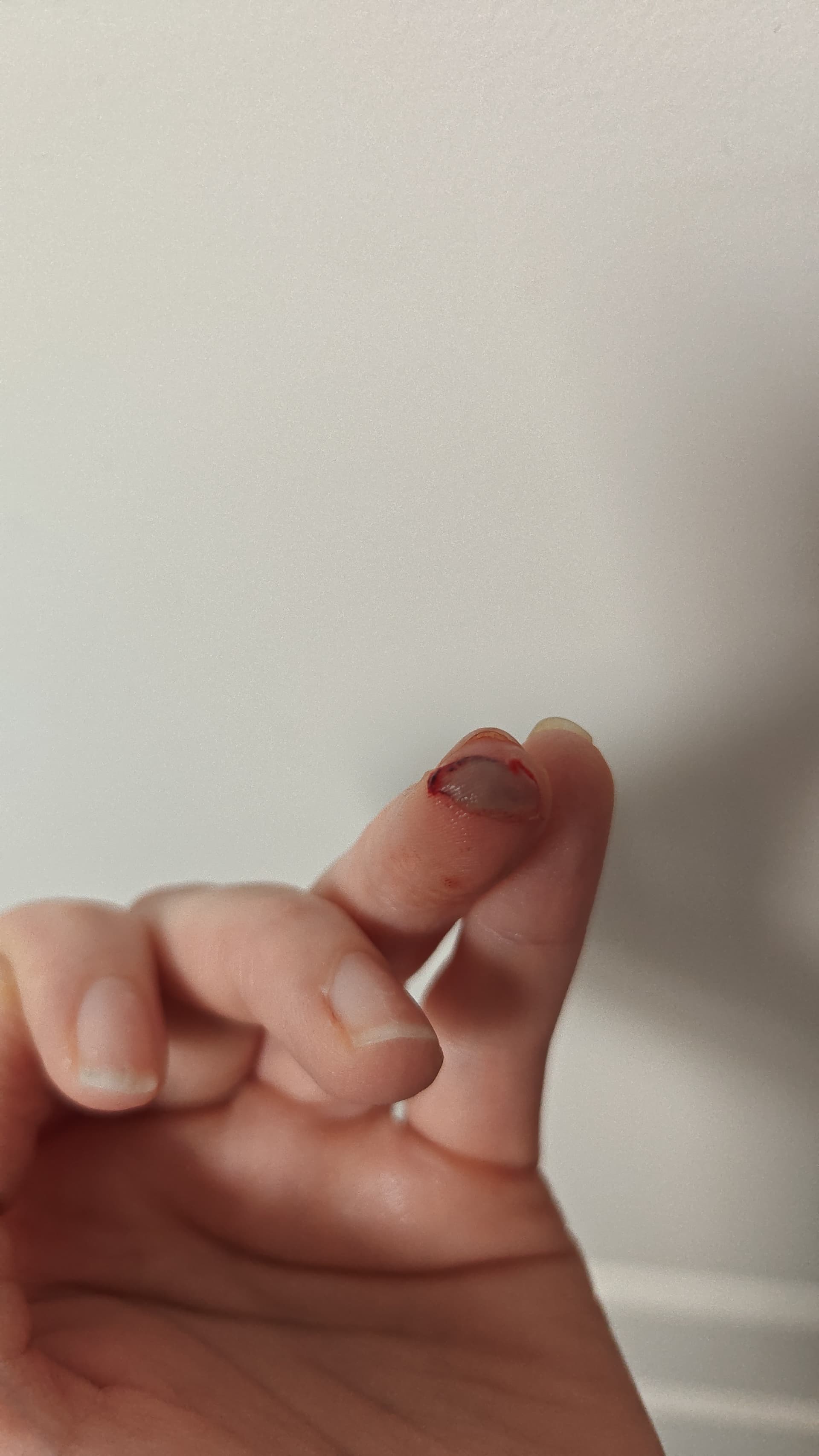 Ik moet echt stoppen met nagelbijten. Nu iets te ver gebeten en toen is een stukje gescheurd en kon ik het niet laten om dat er af te halen.
