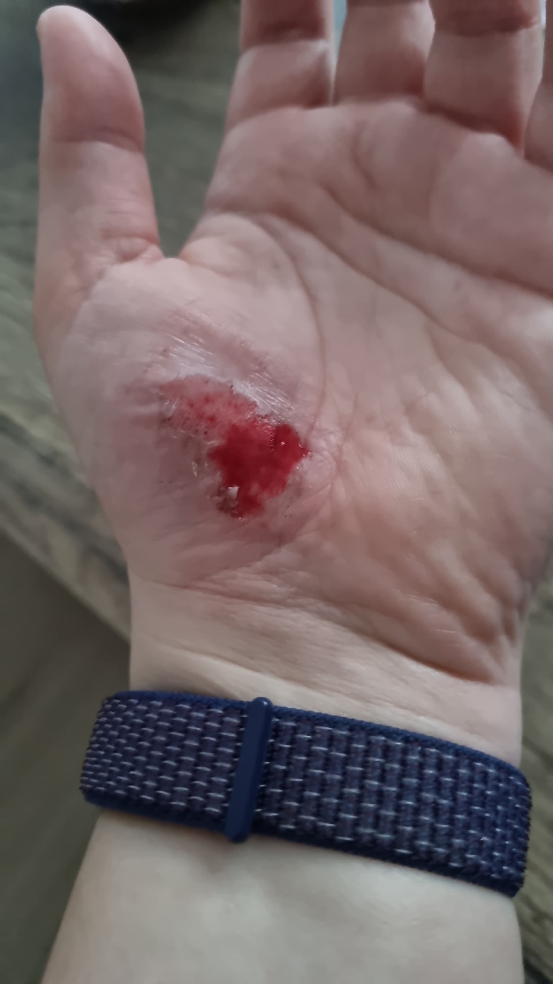 Ik ben gevallen en nu kan ik niet zo goed in slaap komen want het doet best pijn en ik weet niet waar ik mn hand moet houden zonder dat die wond iets raakt. ![]()