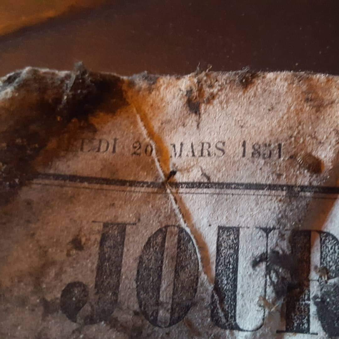 Vrienden van ons kwamen tijdens het openbreken van het plafond een testament van tweehonderd jaar oud tegen. En een aantal kranten uit 1831. Zag er zo heerlijk mysterieus uit.