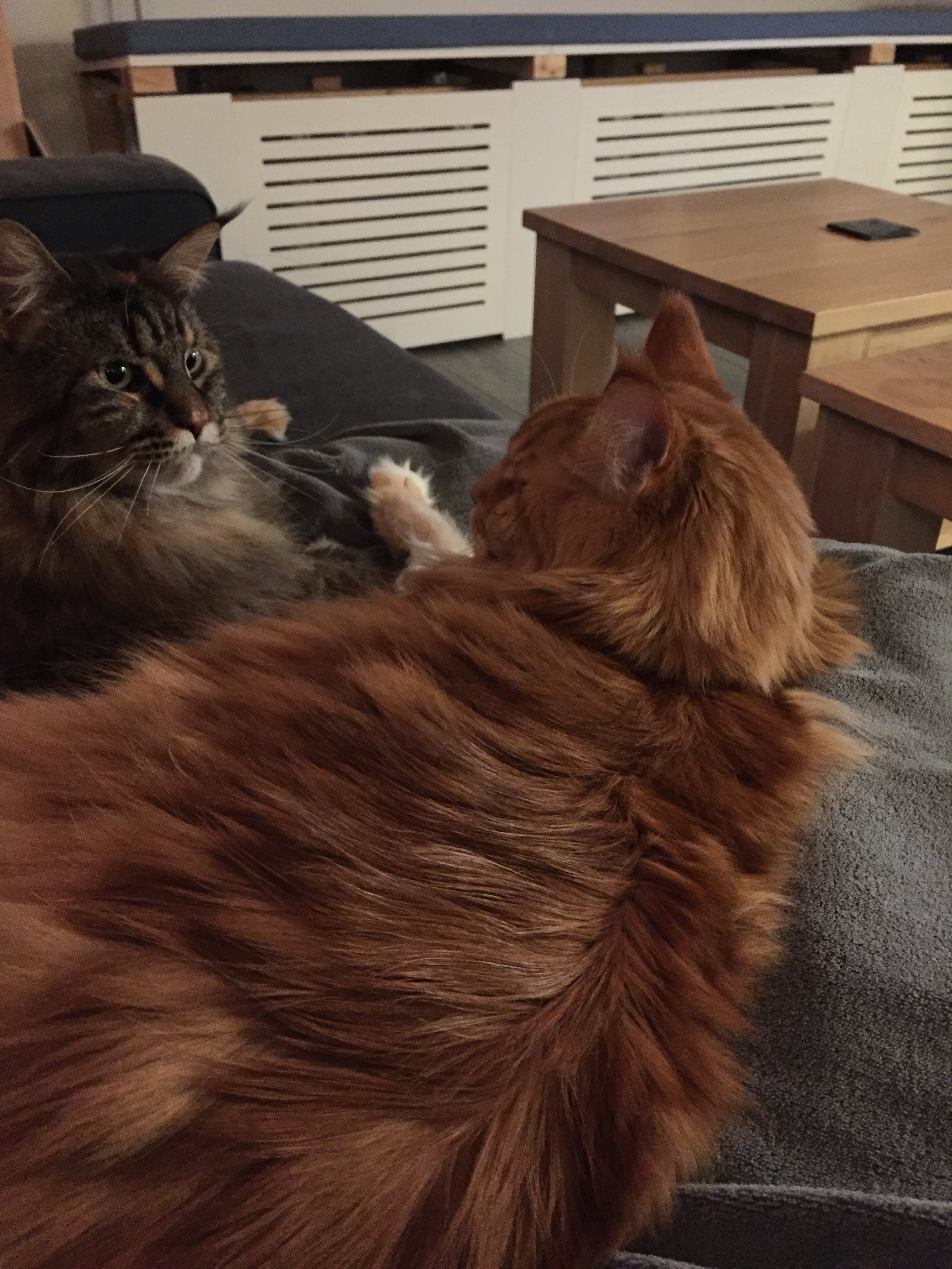 Aaaah cuties! Wij hebben thuis ook een Maine coon en als ik uit huis ga (ooit), wil ik ook 2 coontjes