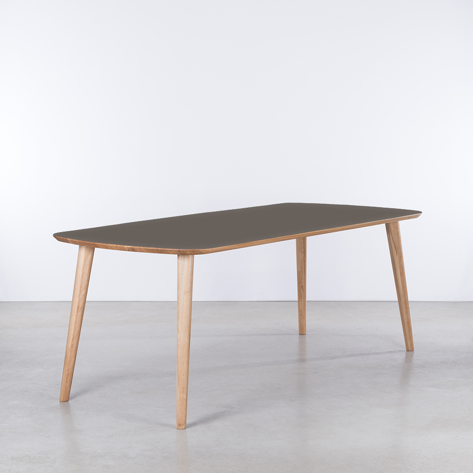 Zoals @quarterlife hierboven ook al een voorbeeld van geeft: een tafel met een blad van Fenix. Tafels van dit materiaal hebben ze op diverse plekken, bijvoorbeeld bij Table du Sud. Fenix tafelbladen zijn er in veel kleuren. Ik zou even zoeken waar ze het bij jou in de buurt verkopen.