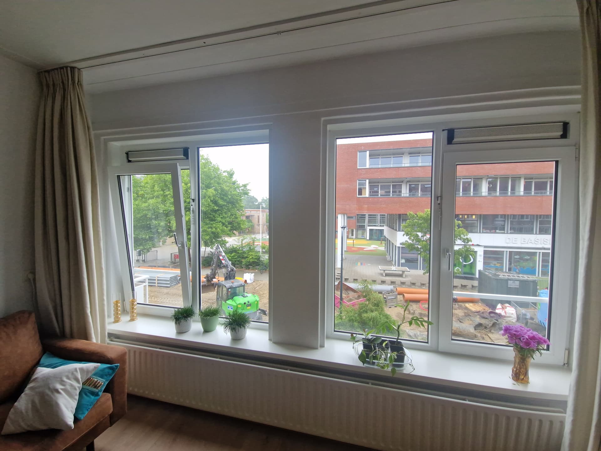 - Als de vouwgordijnen alleen het raam en kozijn bedekken, dus dat je nog wel tussenmuur ziet