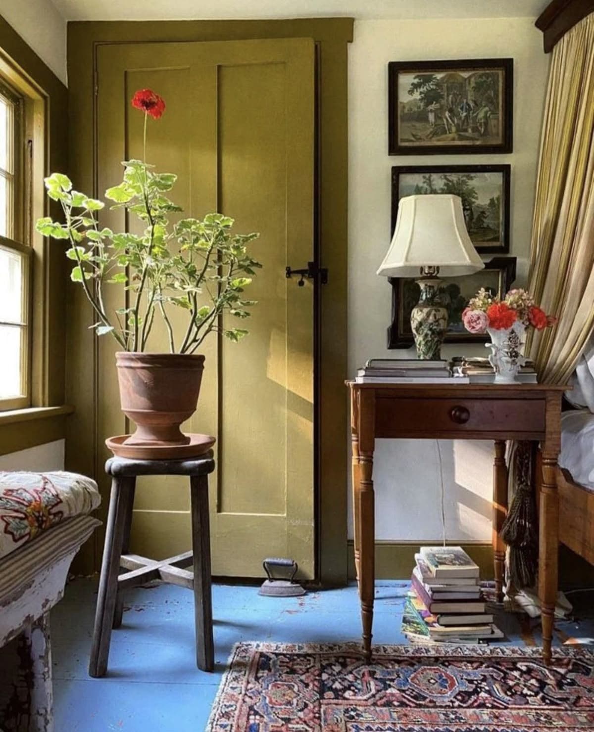 Ik hou heel erg van die olijfgroengelige kleur, en qua interieur stijl denk ik dat ik het meest hou van een beetje mid century modern (???) met dus veel hout/natuurlijke materialen, maar ook kleur (groen, rood/terracotta) en ik vind een mix van materialen, dus ineens een (gekleurd) metalen kastje oid ook leuk. Maar ik kan niet goed plaatjes vinden die echt weergeven wat ik mooi vind.