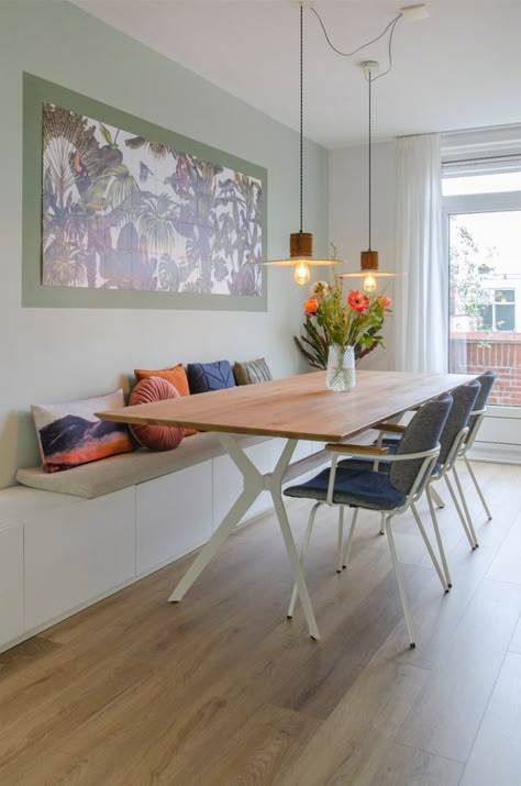 @Merel Ja, zo’n bankje was eerst mijn idee, heel leuk! Maar om dat een beetje passend te krijgen, moest mijn tafel te ver de kamer in en bleef er te weinig ruimte over mijn zitgedeelte.