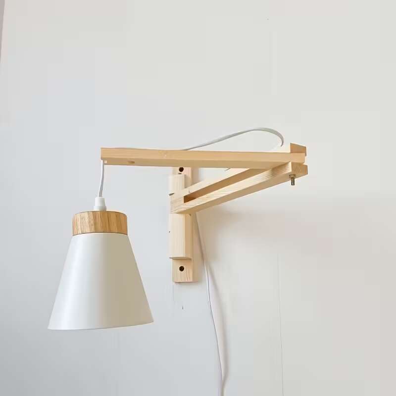 Ik heb in m’n werkkamer een schuin plafond en het centrale lichtpunt zit op een wand, ik kan geen gaten in het plafond boren. Ik kan geen mooie wandlamp vinden die de ruimte ook genoeg verlicht (en die ik kan betalen). Dus ik wil misschien zo’n soort lampenkap: