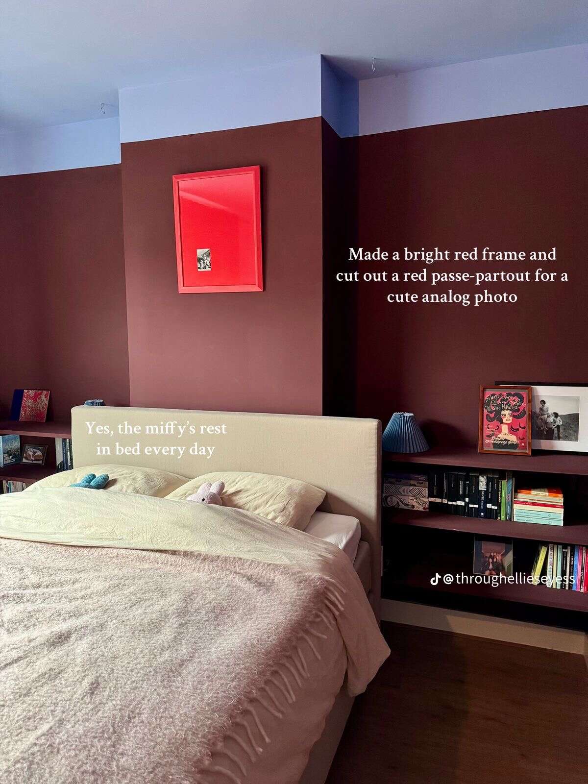 snap ik!! je kan een gleuf frezen en 'm veel lager doen, of als je dat niet kan/wil iig een cute koortje nemen haha in de kleur van je muur