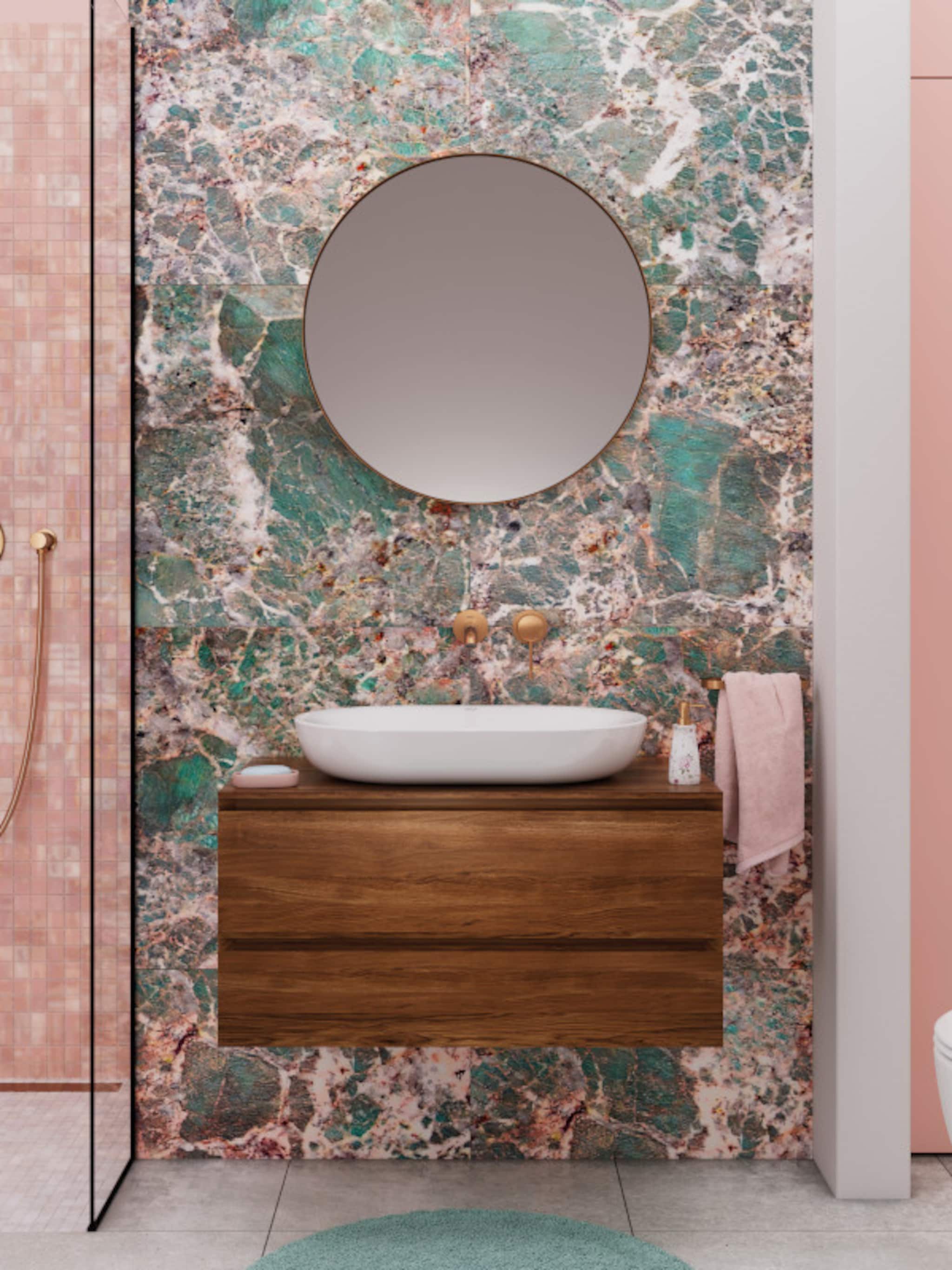 Zulke tegels in je douche en dan de kleine tegeltjes achter je wastafelmeubel