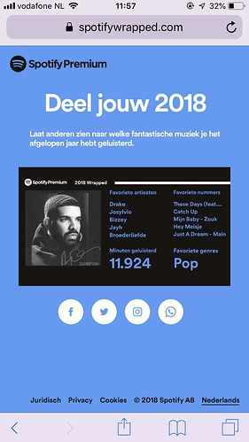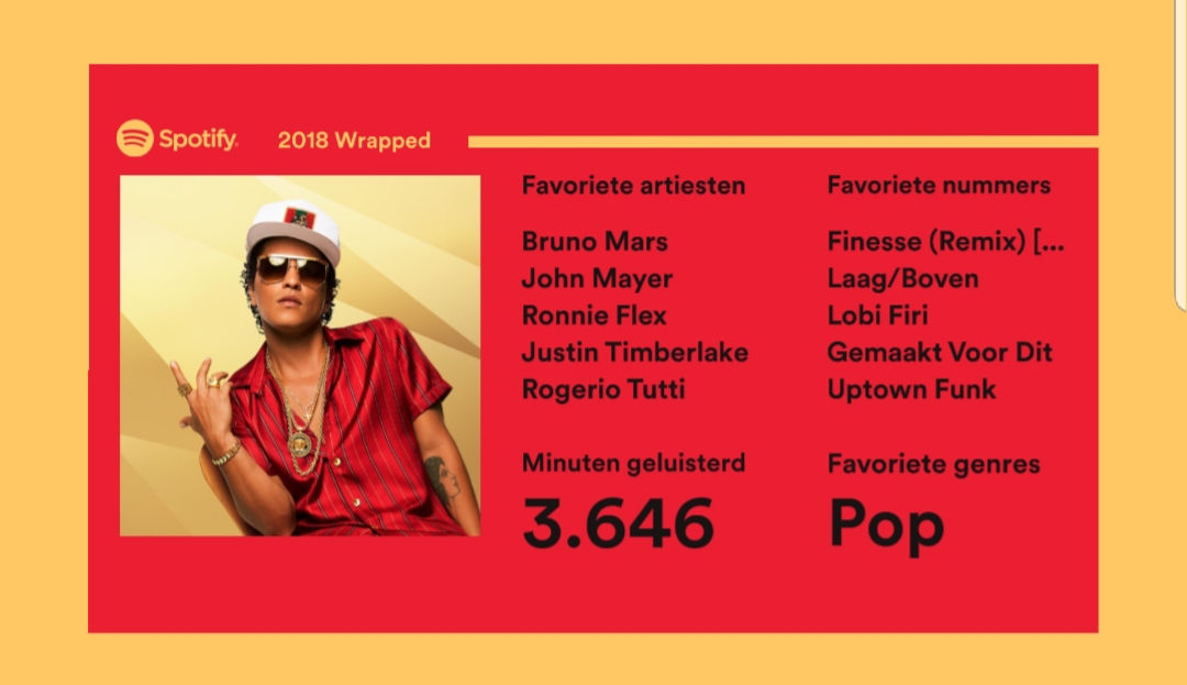 Ik heb 28,000 minuten vanaf september. (Daarvoor had ik een gedeeld account met mijn vader.) Ik denk dat wij vooral in het weekend bijvoorbeeld van de ochtend tot ooit zelfs in de nacht spotify aan hebben staan op de boxen door het huis. Dan zit je natuurlijk zo aan een heel aantal minuten. En dan nog altijd savonds muziek aan staan, in de bus, tijdens het douchen, het weekend. Dus eigenlijk altijd als we thuis zijn en ik ook nog onderweg.