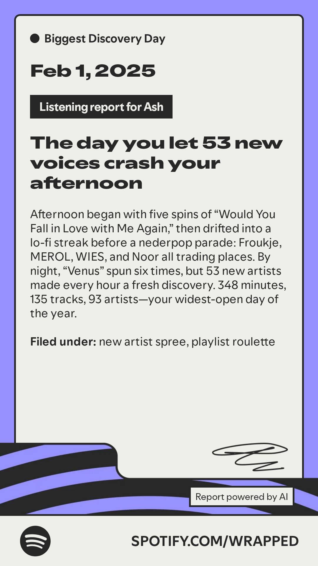 Ik heb dus speciaal voor mn dochter een eigen account gemaakt (had toch nog ruimte op mn familyaccount), zodat ik volgend jaar geen wrapped heb vol met juf roos enzo, haha.