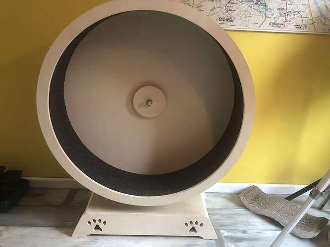 Haha ja dit is een loopwiel voor katten. Tot nu toe hebben ze er even ingestaan en van binnen bestudeerd. We hopen ook dat ze hem gaan gebruiken, anders is het een hele dure krabpaal
