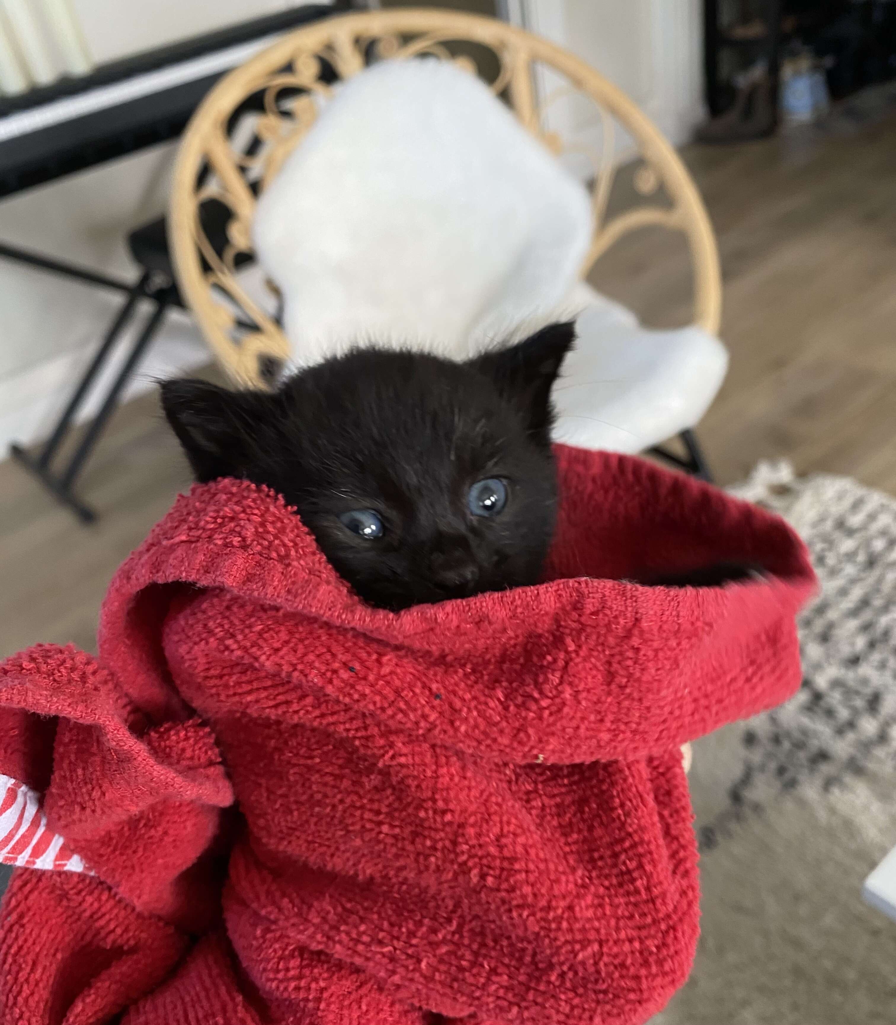 Het is wel veel werk want ze moeten om de paar uur eten en ik moet ze wegen om te kijken of ze wel genoeg aankomen. Ze zijn gisteren allemaal aangekomen maar die met het oranje bandje eet niet zo goed. Het is wel zielig want ze zijn nog zo jong dat ze proberen te zuigen in plaats van echt eten. Ze krijgen nu een papje van kitten melk en speciaal natvoer voor hele jonge kittens. Maar ik moet waarschijnlijk die ene bijvoeren met een pippetje.