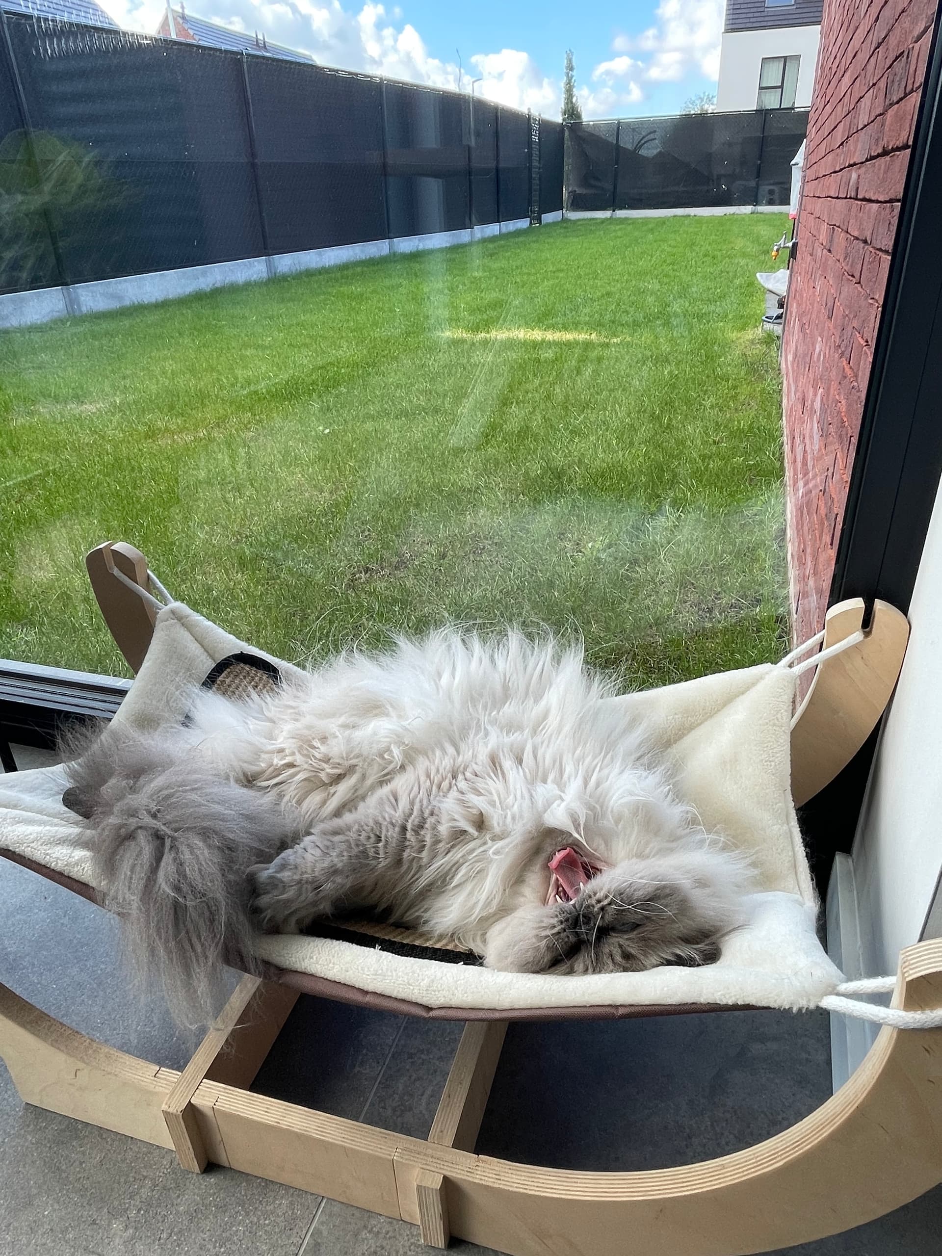 Het lievelingskussentje van mijn kat zit in de was en nu is ze helemaal ontheemd. Voel me bijna schuldig