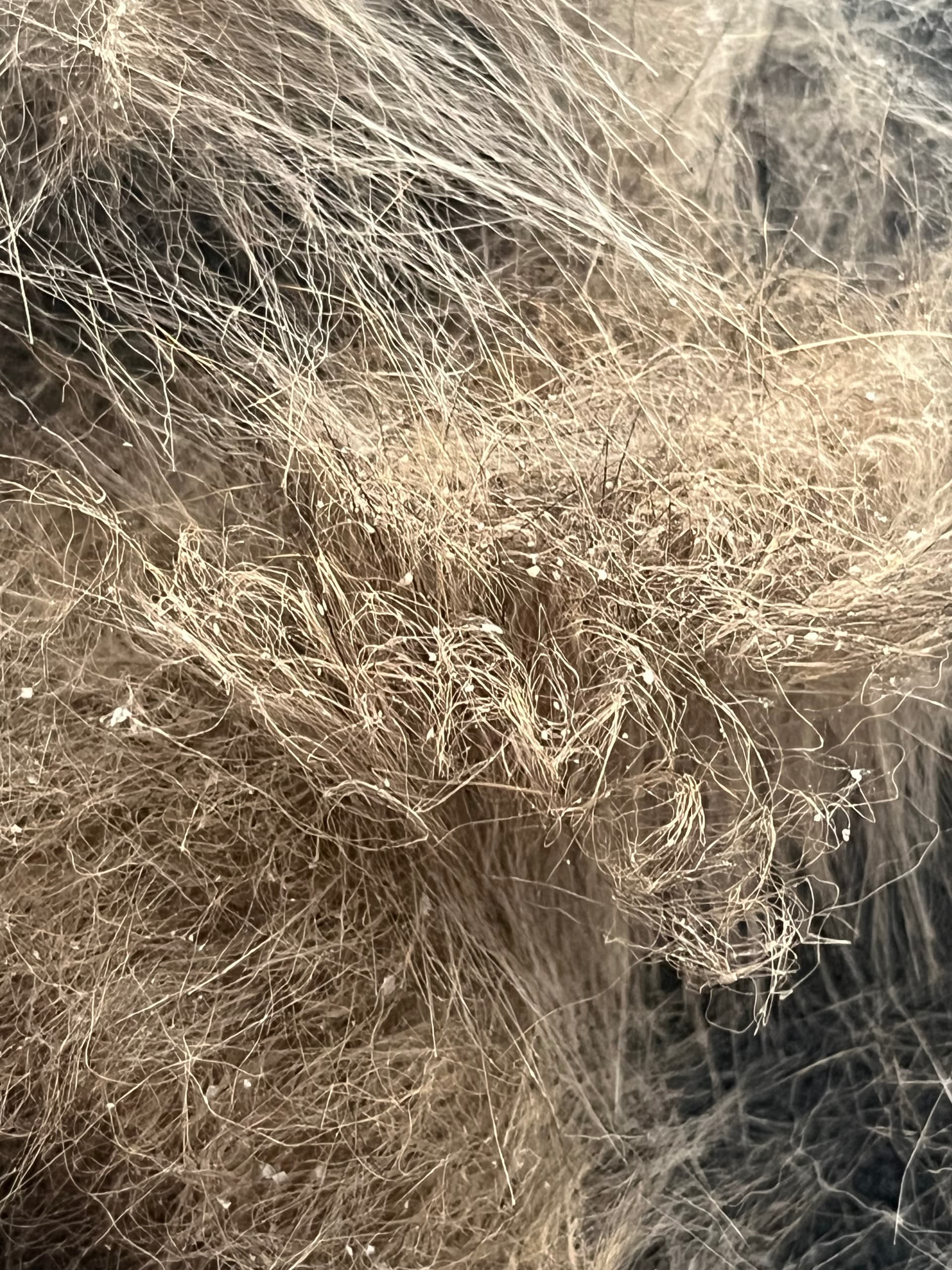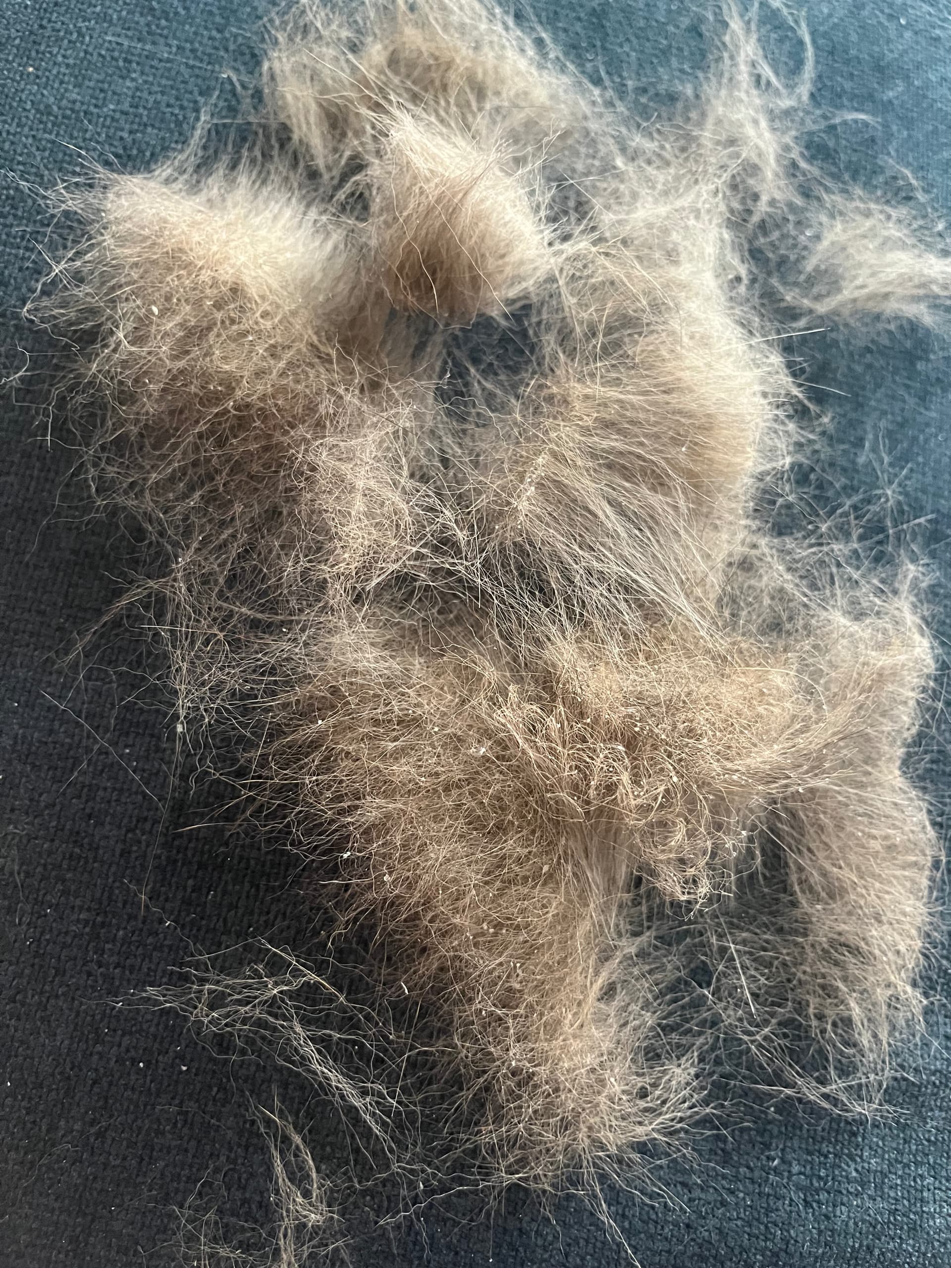 Hieronder een deel van de schilfers, en een miniscuul gedeelte haar dat ik kam ![]()