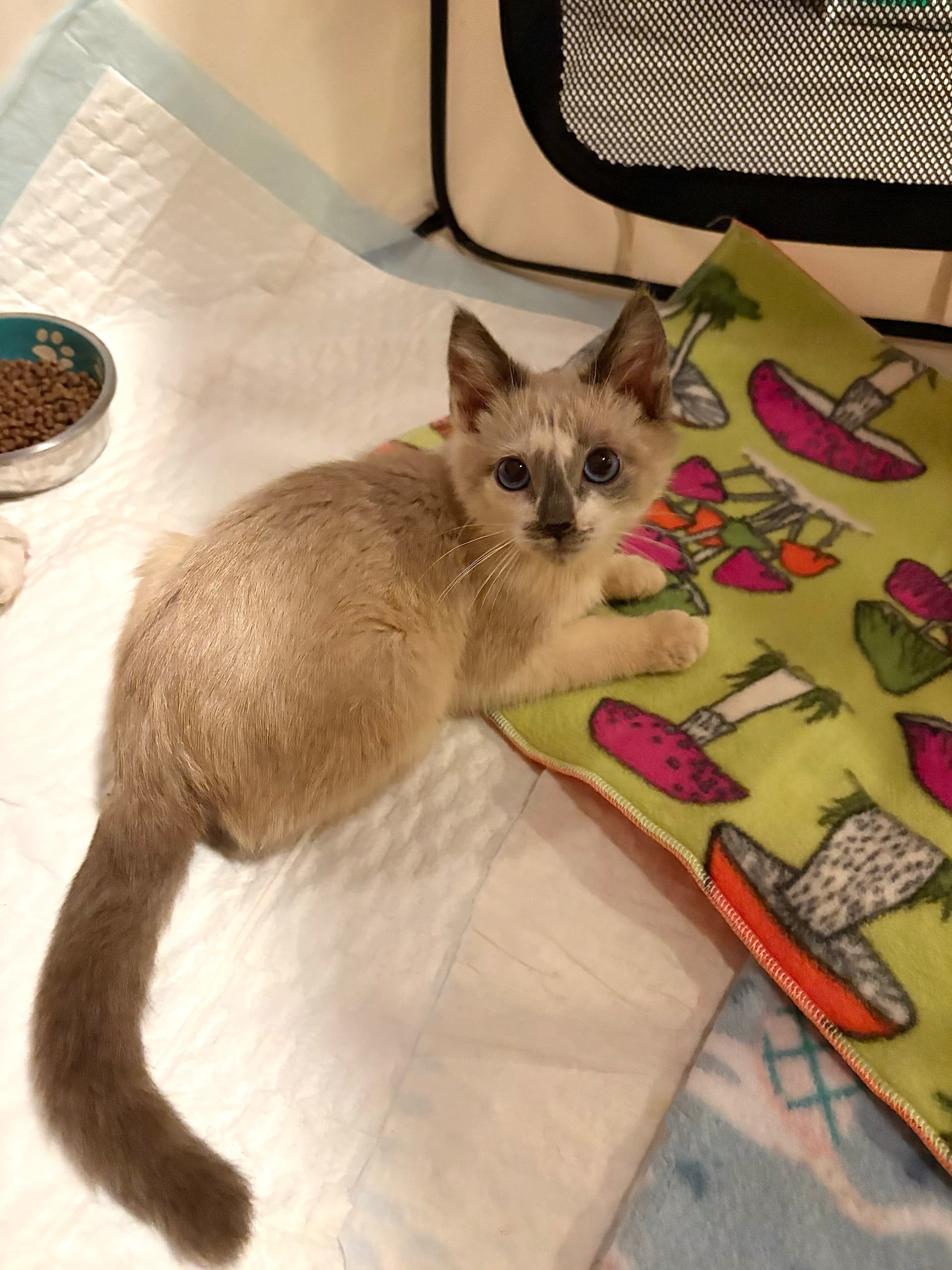 Ik heb sinds maanden weer eens een foster kitten, dit is Cowboy en hij is super schattig.