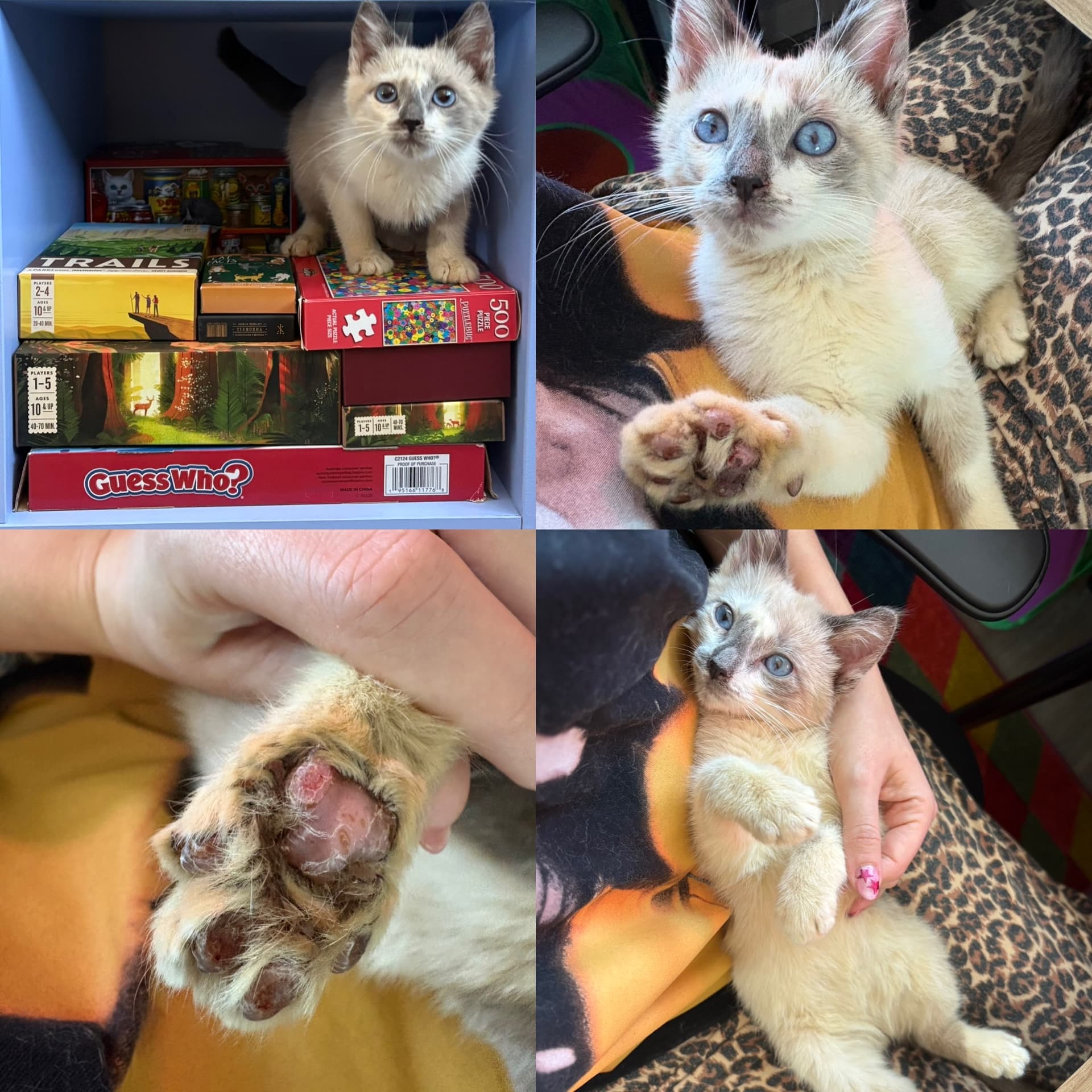 Sorry, hij is zooo cute moest ff meer foto’s delen! Zijn toe beans zijn verbrand, op alle pootjes, echt sneu. Maar het is gelukkig al aan het genezen en hij rent de hele kamer rond dus denk niet dat hij er veel last van heeft!