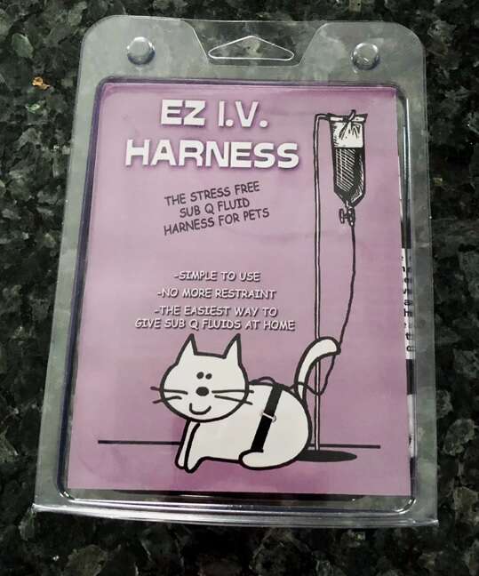 Om mijn kat makkelijker een onderhuids infuus te geven heb ik een tijdje geleden een EZ IV gekocht, dat is een soort harnas waar je de naald in kunt bevestigen zodat je kat gewoon rond kan lopen terwijl je vocht toedient. Bij mijn kat ging het destijds makkelijker dan verwacht dus ik heb hem maar een paar keer gebruikt, zou iemand van hier hem misschien kunnen gebruiken? Ik heb haar in laten slapen en ik vond het in het begin nog te pijnlijk om haar spulletjes weg te doen ![]()