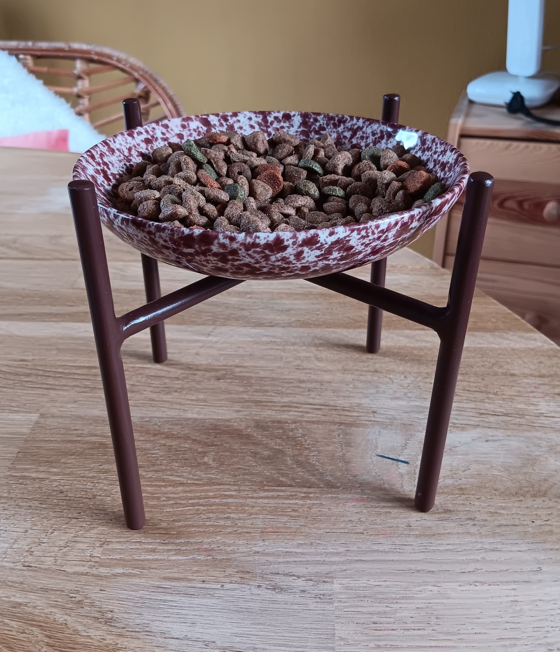Ik heb dit ook voor onze hond, maar dan met bamboe plantenstandaarden van Ikea. Ik kon nooit kleinere vinden voor de katten maar die hebben ze nu dus in de nieuwe collectie bij de Hema. De katten drinken zelfs graag uit de waterbakken van de hond op deze hoogte haha.