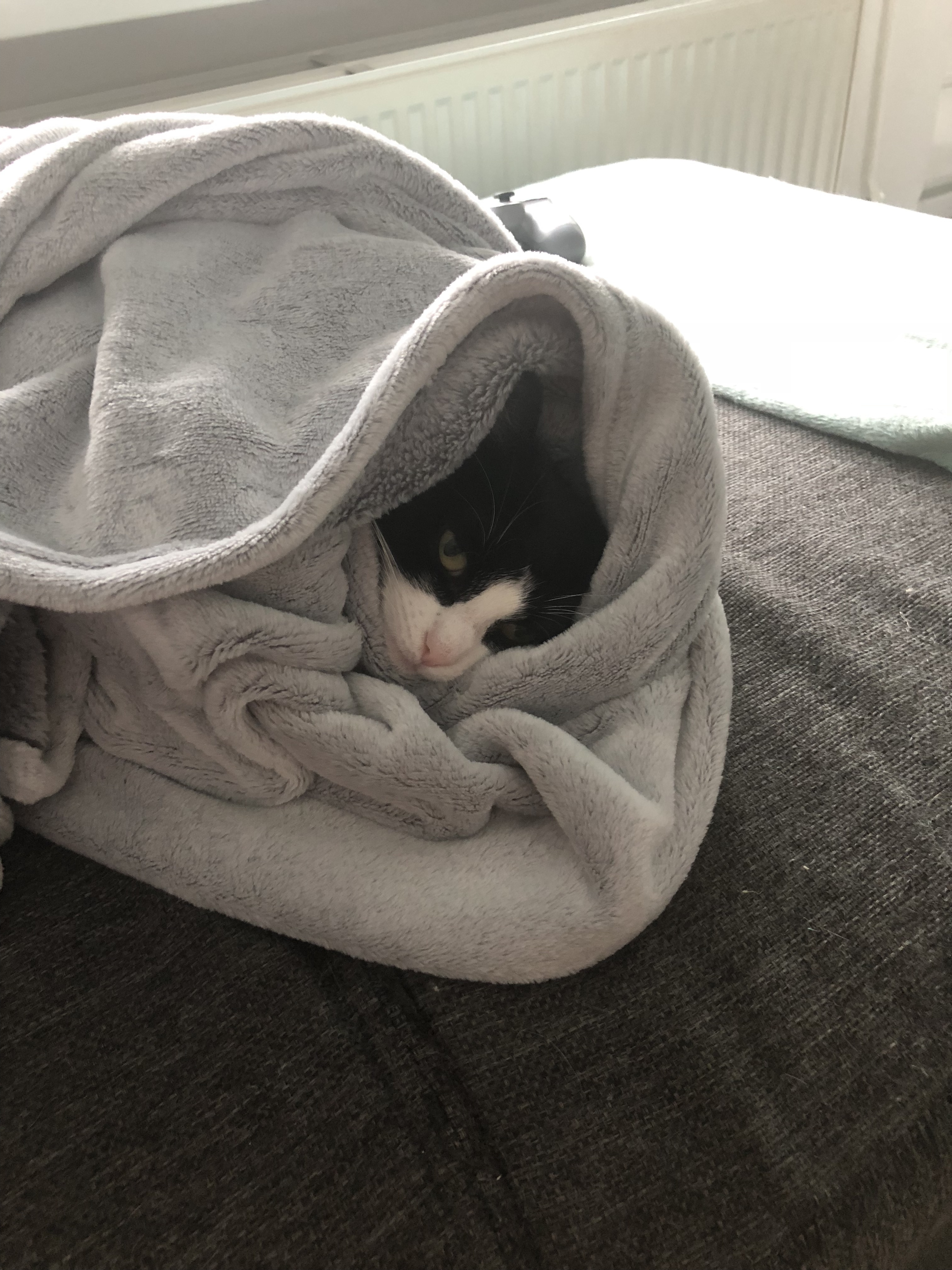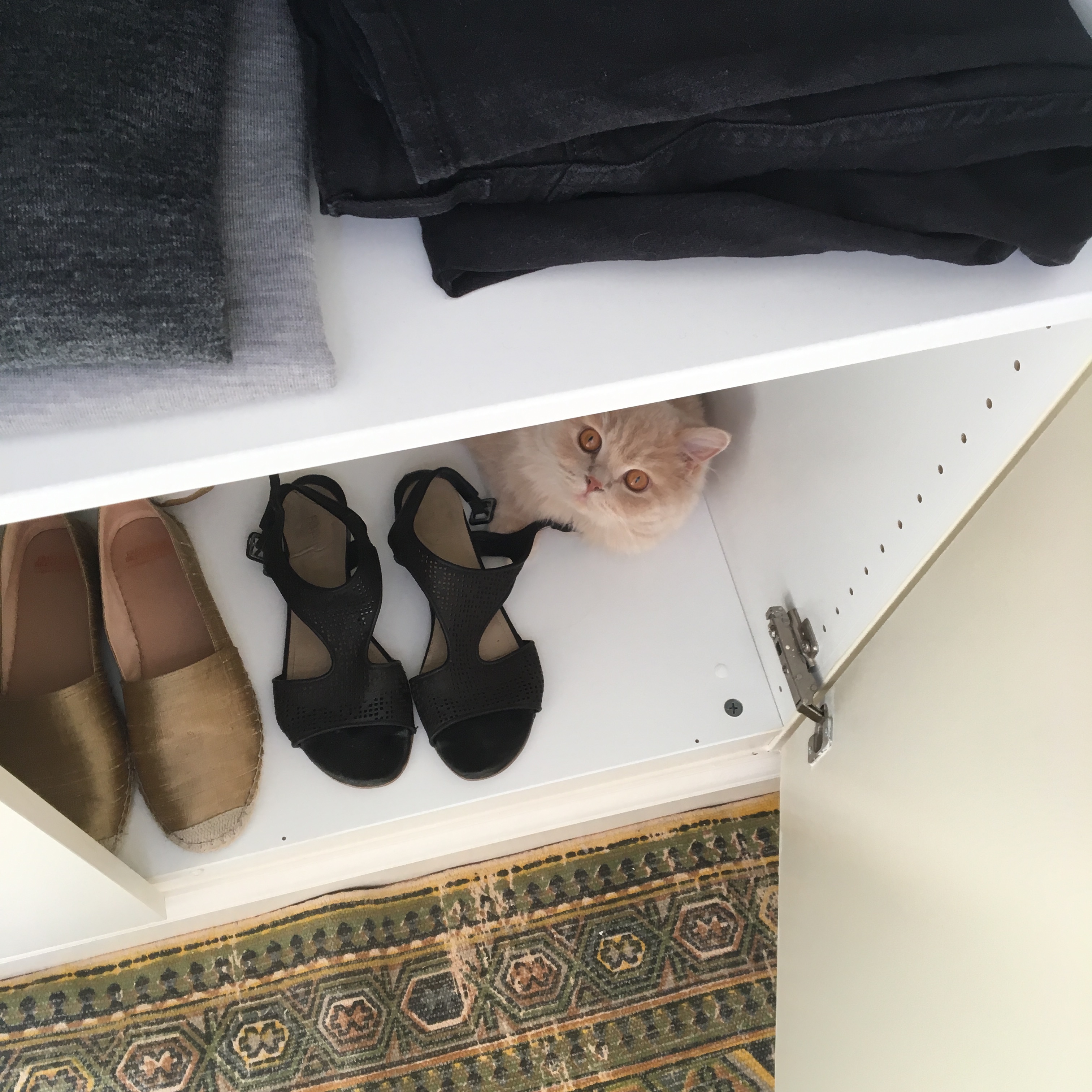 Kast opruimen en m’n kat heeft z’n plekje gevonden en wil d’r niet meer uit, zelfs niet nadat ik de deur een tijdje dicht gedaan had
