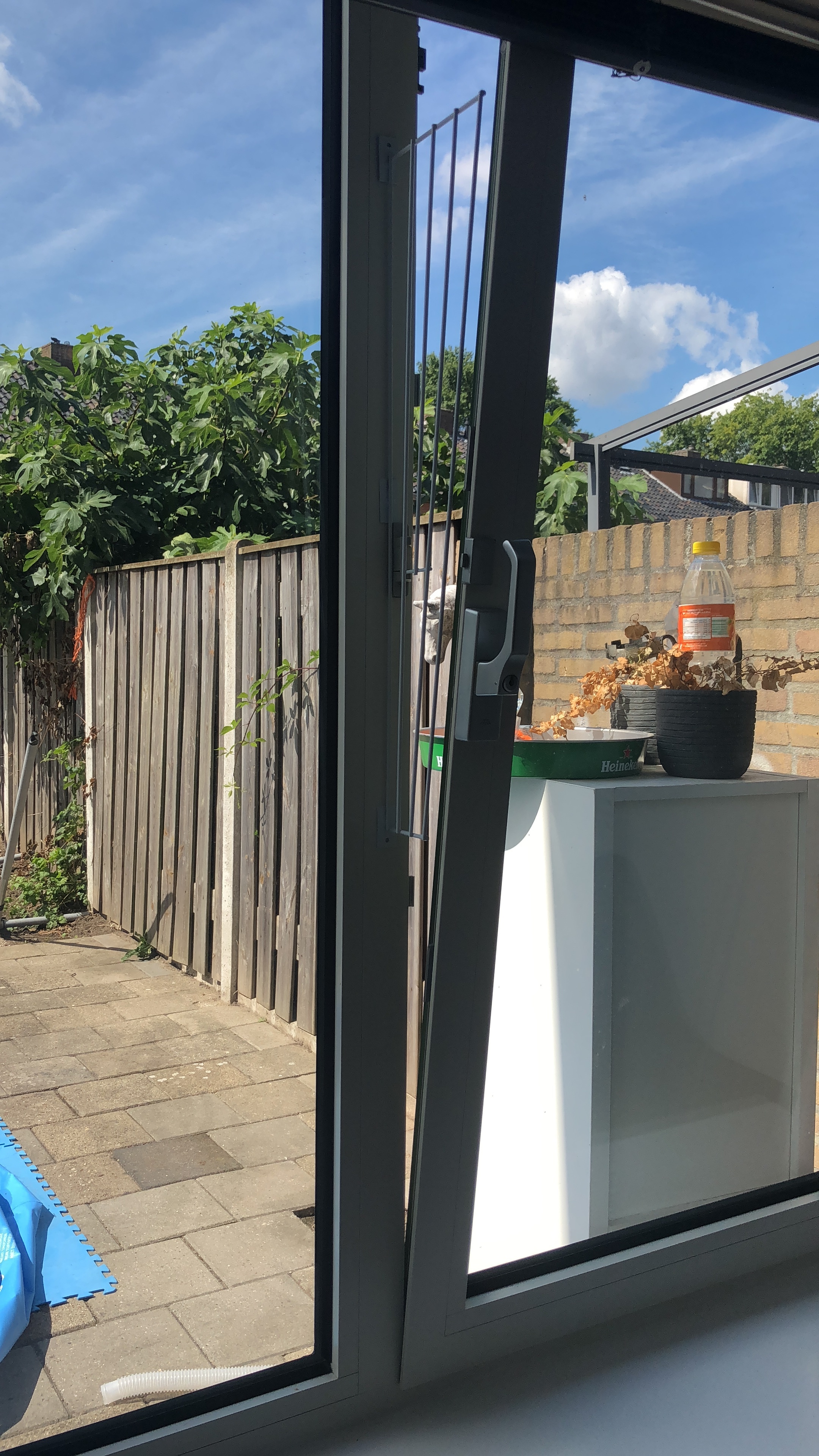 Moet het hoger? Maar kan de kat dan onderin er niet tussendoor met zijn kop? Bij alle foto’s op Google zit ie helemaal tot bovenaan het raam en is het onder nog een stuk open, maar dat voelt alsnog niet helemaal veilig…