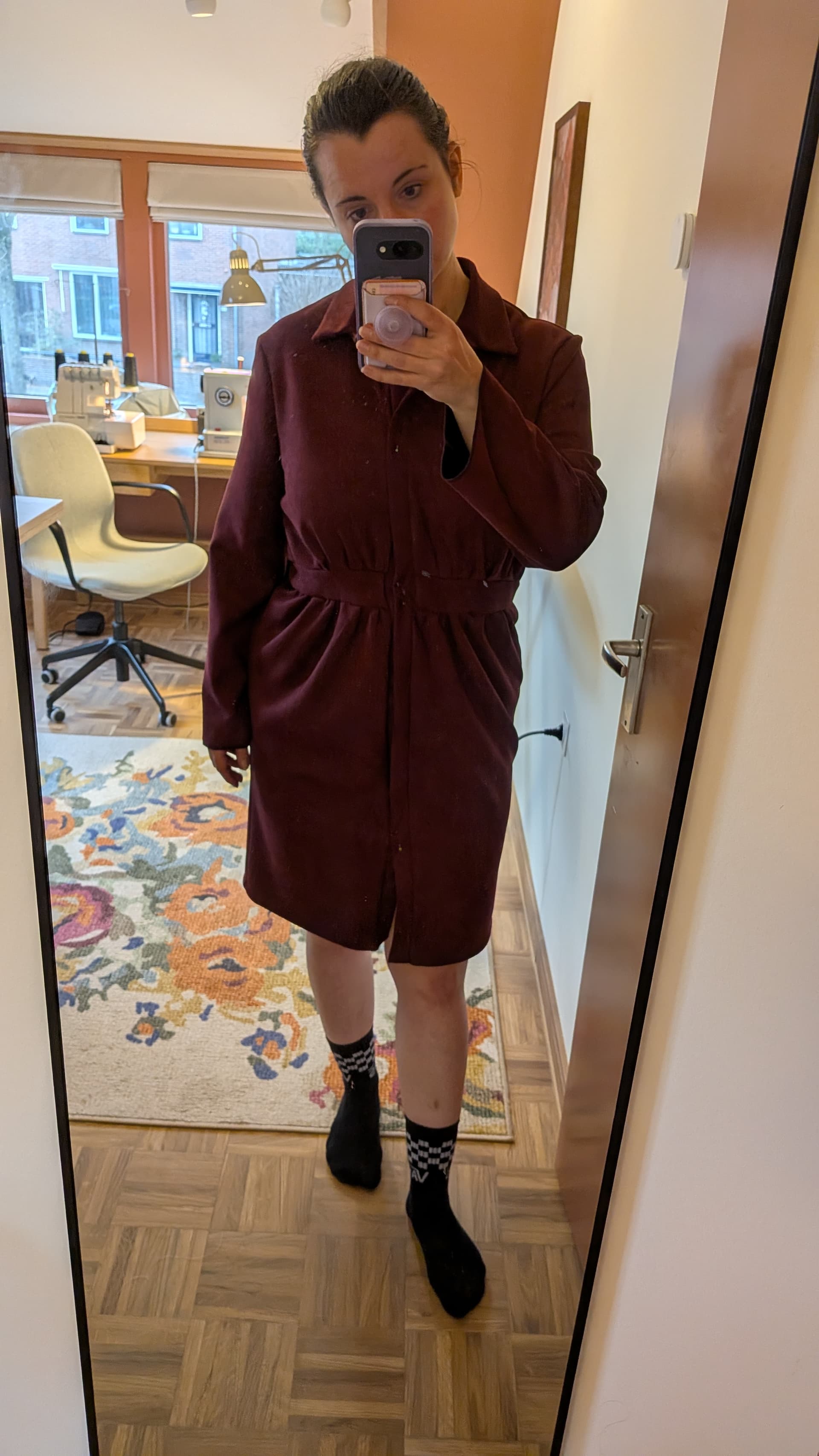 Meer mensen die hun feestdagenkleding aan het maken zijn? Deze jurk is bijna af. Hij zit nu in de was omdat hij best wat kleur afgeeft. Als hij droog is ga ik knoopsgaten maken en mooie glimmende knopen erop naaien.
