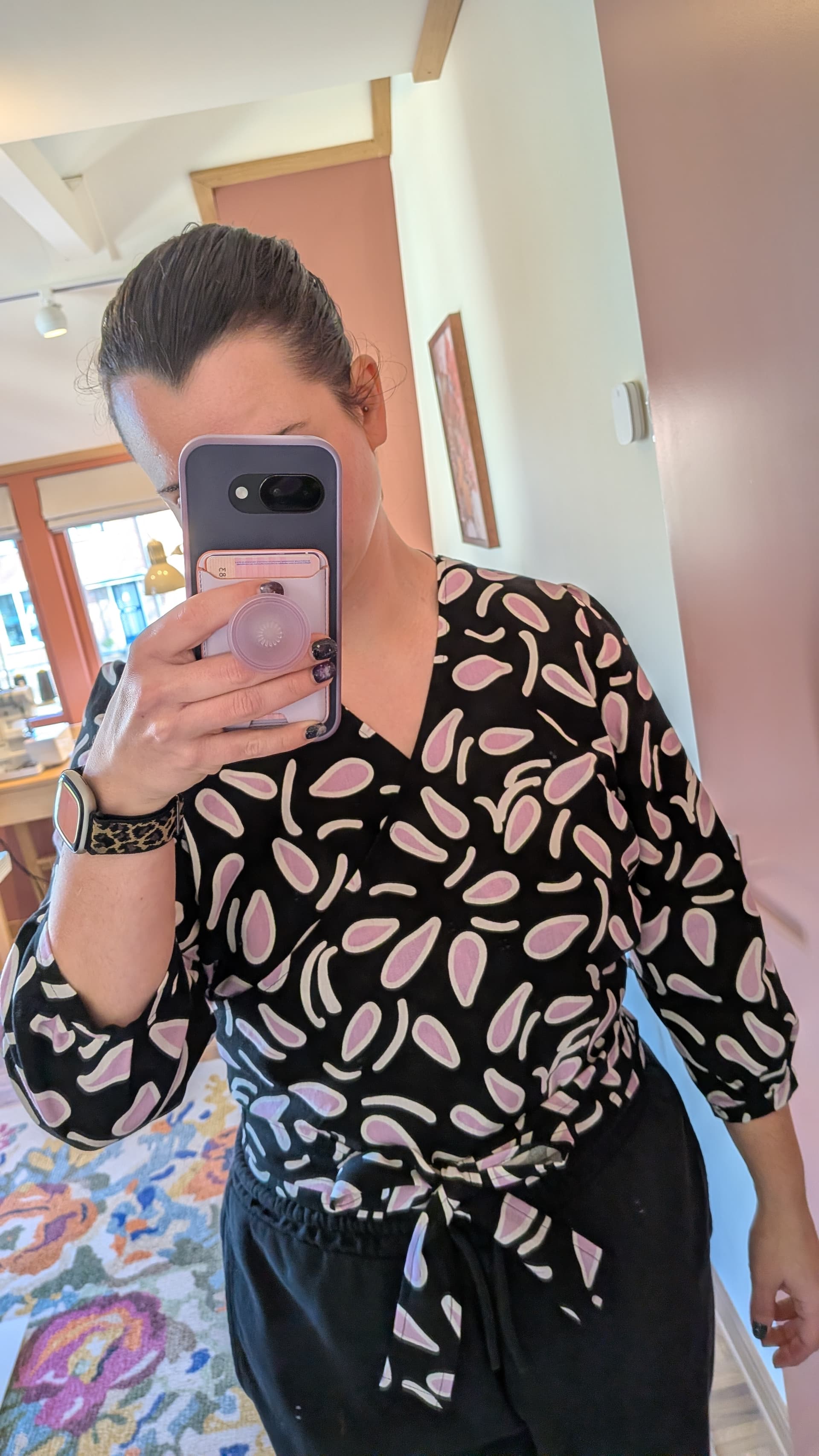 Ik ben de Wrap Top van Peppermint Magazine aan het maken. Heel leuk patroon! Moet alleen de onderrand en mouwen nog zomen. Ik denk dat ik de mouwen anders afwerk dan wat het patroon wil. Een boordje om ze puffy te maken lijkt me leuker dan recht omzomen.