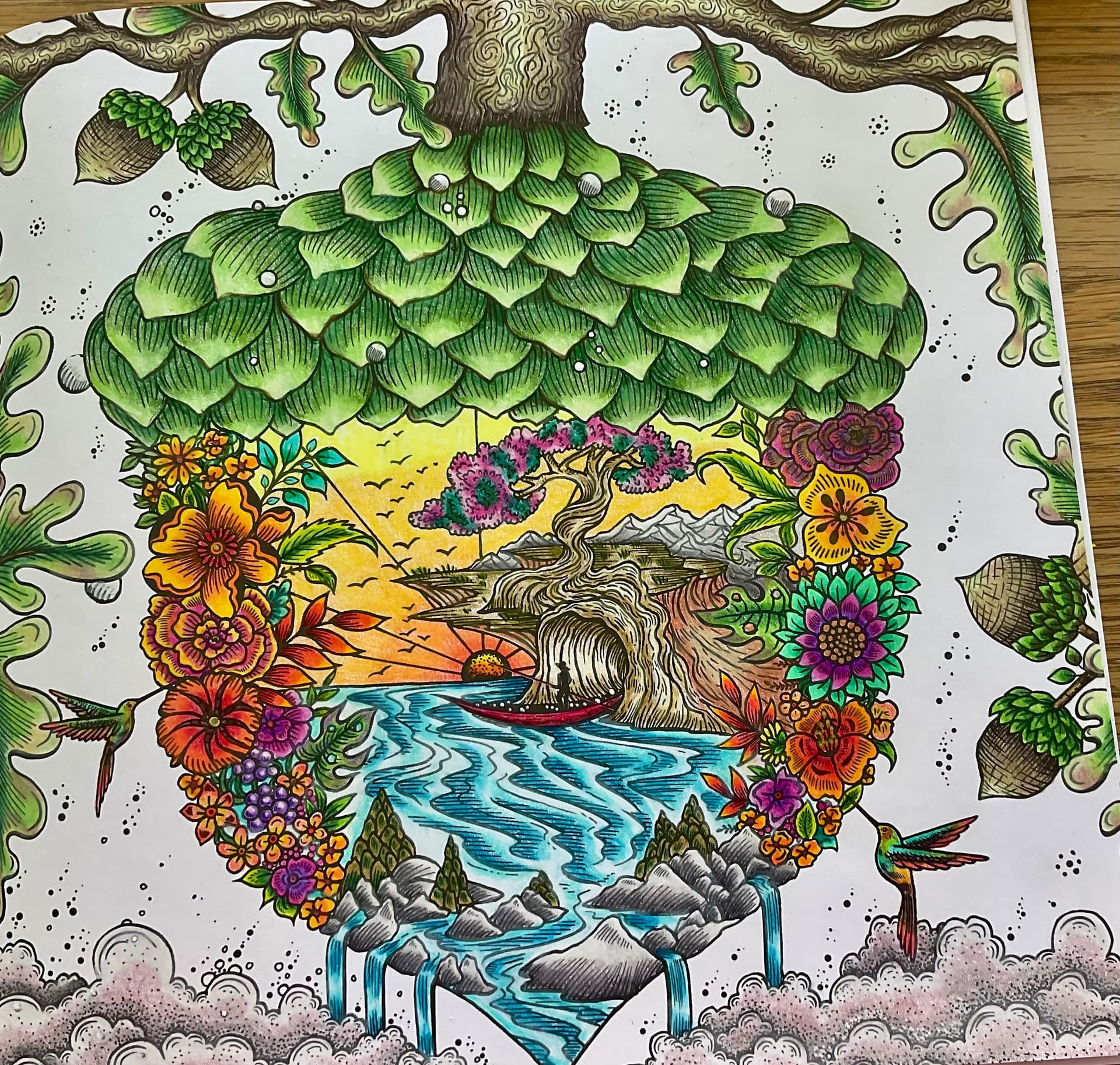 Sowieso ontspan ik altijd helemaal tijdens het kleuren en dan daarna kijk ik ernaar en ben ik weer kritisch en is alle ontspanning weg omdat het niet zo mooi is als ik hoopte