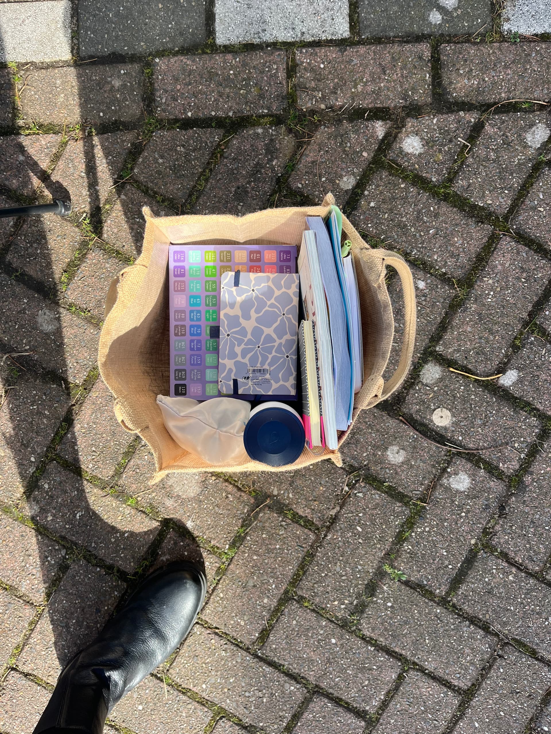Vanochtend scheen de zon hier heerlijk, dus ik dacht ga lekker buiten zitten. Ik zie op Instagram continue ‘analogue bags’ voorbij komen dus heb ook een begin gemaakt om die spullen mee naar buiten te nemen. Buiten zitten was alleen van korte duur maar komt wel weer!