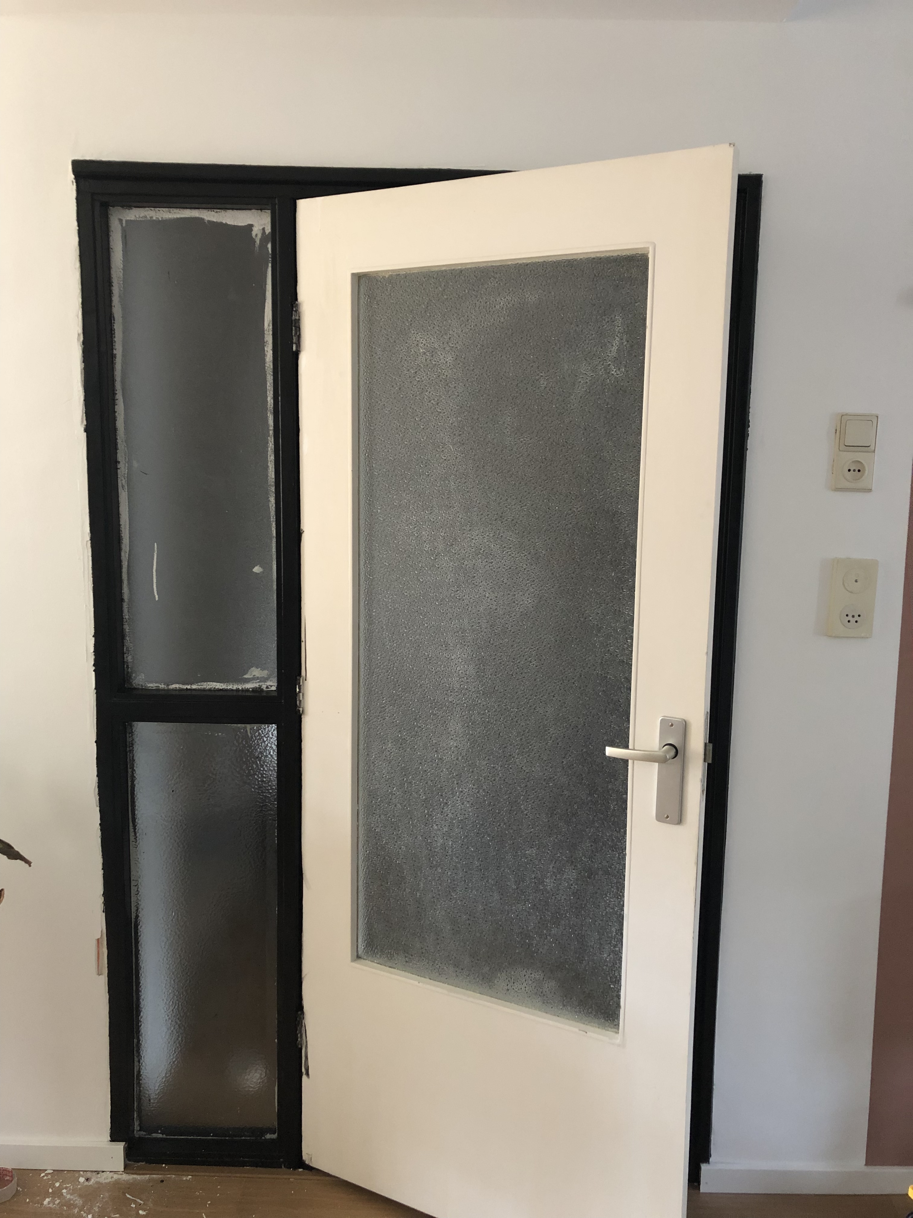 Ik ben dus dit kozijn aan het opknappen en wil eigenlijk van de raampjes (verfresten en twee verschillende ramen dus niet echt te redden) af. Nu wil ik er dus eigenlijk zwarte panelen in plaatsen (de deur wordt vervangen door een staallook zwarte). Heeft iemand tips qua materiaal voor de panelen/hoe je dit het beste aanpakt?