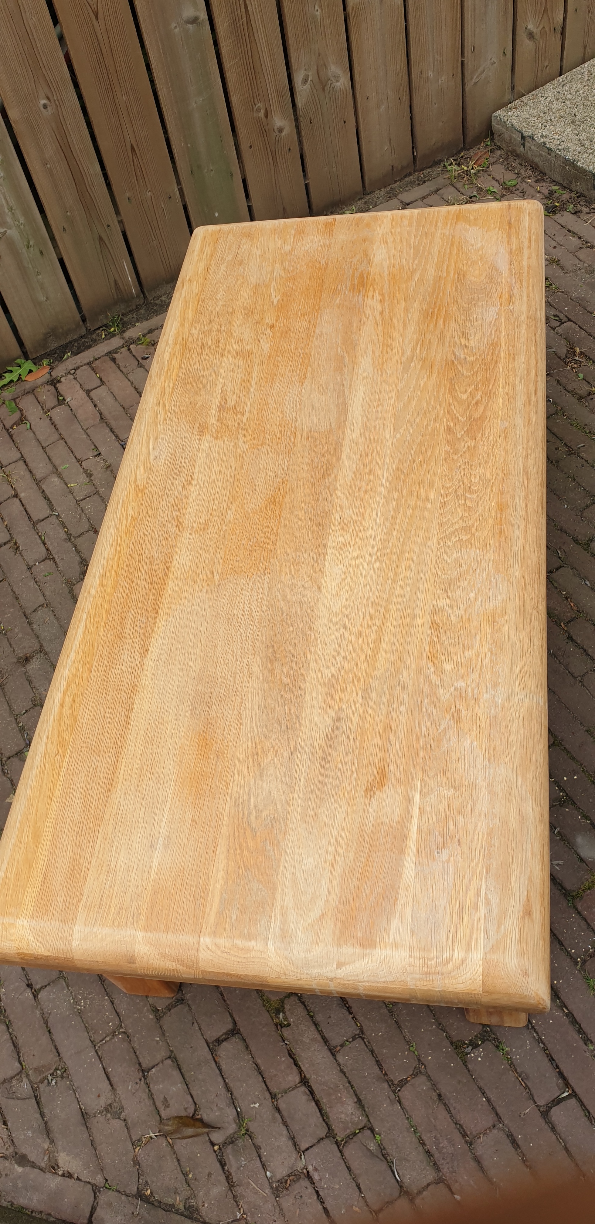 Echt al wel een verschil hoor!! Nog een keertje schuren, misschien met een iets grovere korrel? Het lijkt me massief hout, daar kan best nog een laagje vanaf.