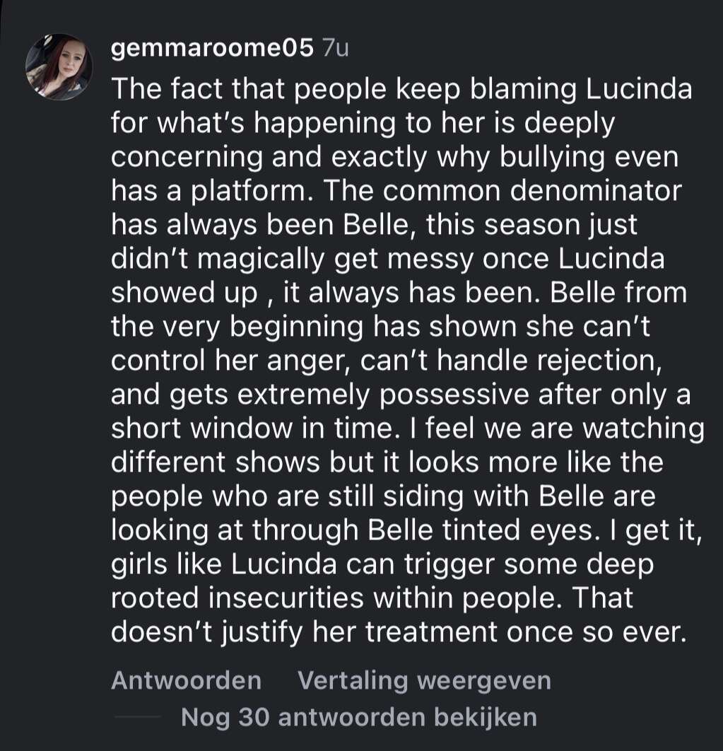 Belle schijnt een ‘van zonnebrand krijg je kanker’ persoon te zijn, dus die was heel snel van mijn favorietenlijstje. Whitney ook, die liket Andrew Tate en Jordan Peterson posts (alhoewel ik haar duidelijk een stuk meer entertaining vind dan Belle). Er is echt niemand die ik dit seizoen echt mag. Samie is teringsaai. Millie en Helena zijn bij vlagen leuk, maar overwegend ook saai. Lucinda is vermakelijk want instigeert een hoop drama, maar blijft Lucinda. Jess is net zo irritant als in haar originele seizoen, snap echt nog steeds niet hoe zij heeft kunnen winnen. Belle en Whit zie hierboven. Leanne heeft potentie maar krijgt een ghost edit. En de mannen zijn allemaal kut, behalve potentieel Konnor. Maar alsnog is het vermakelijk met alle drama (ik vind het echt helemaal niet saai). In ieder geval duidelijk beter dan All Stars 2.