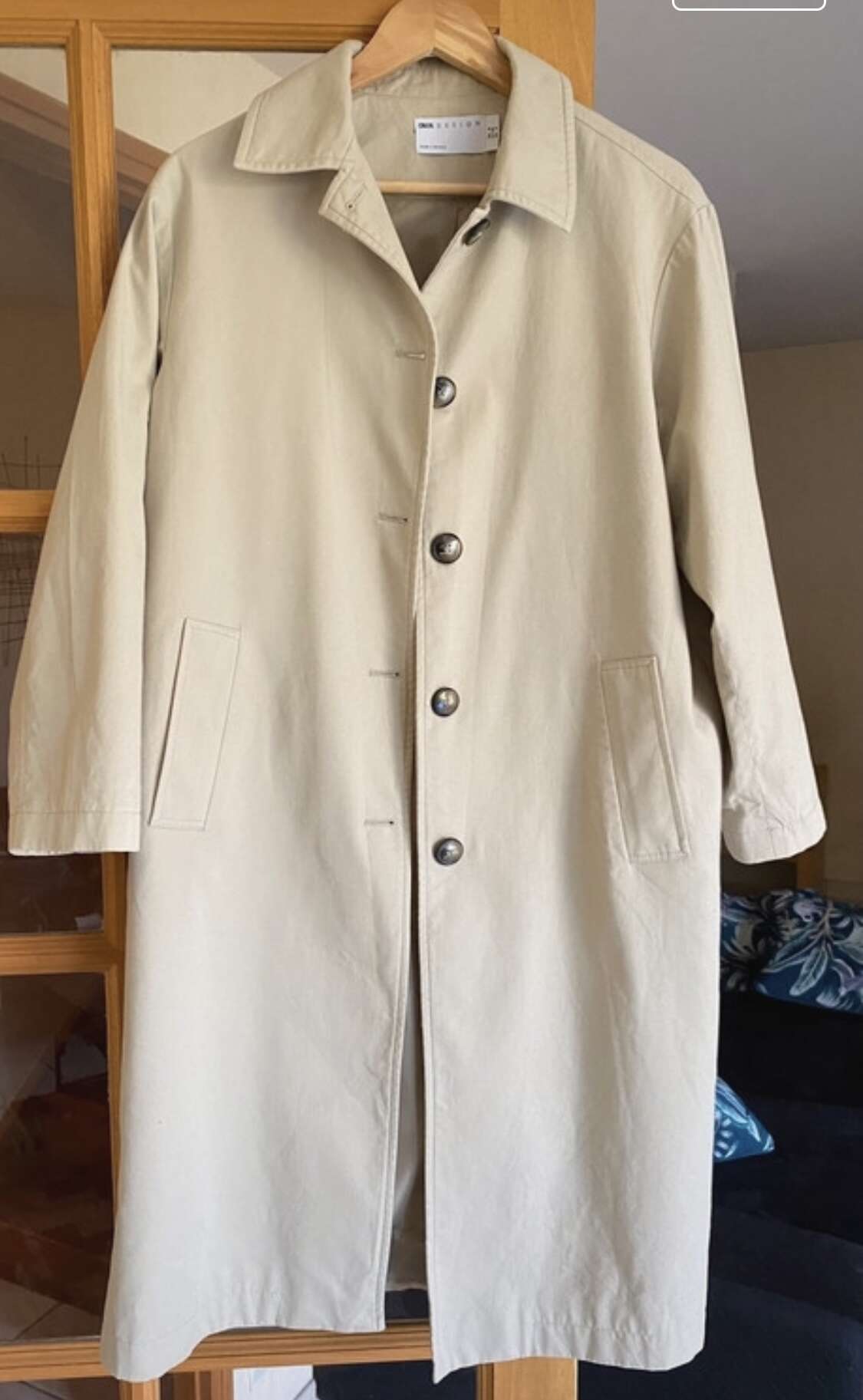Het zijn vaak mannen modellen die single breasted zonder riem zijn, dus je zou ook tussen de trenchcoats op Vinted bij mannen kunnen kijken.