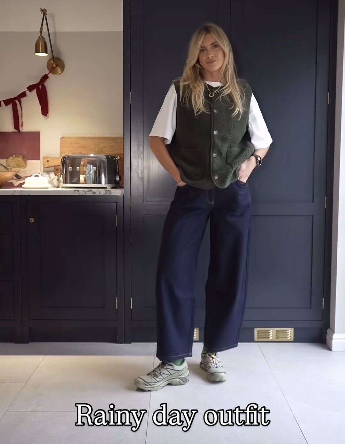 Qua stijl bijvoorbeeld zoiets maar dan met een blauwe (baggy) spijkerbroek en dan mag zoân vestje ook in een heldere kleur: