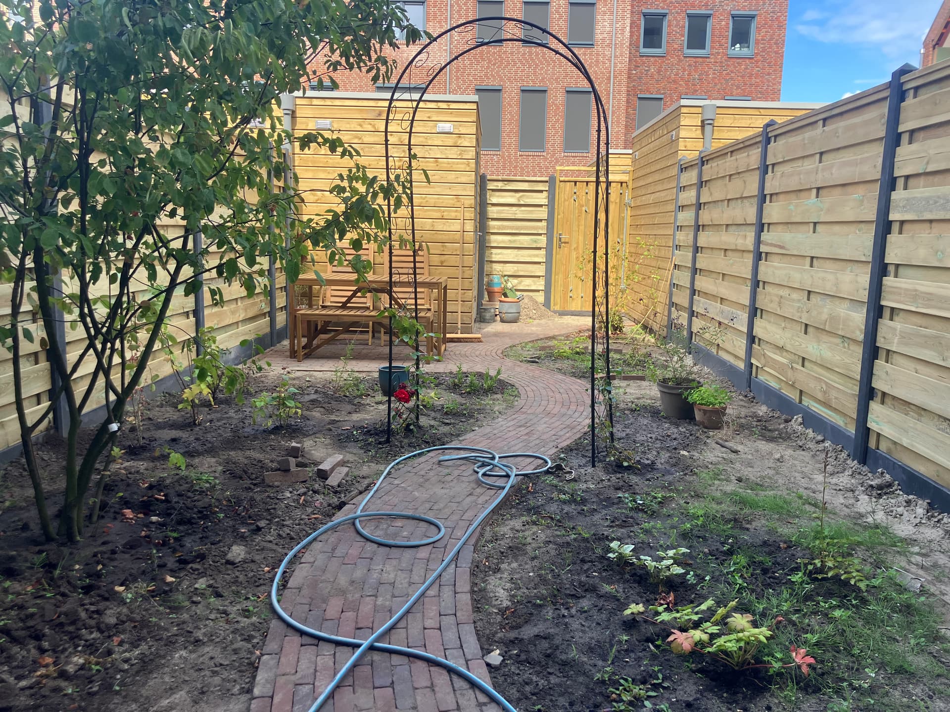 Wat een verademing om geen grijs beton in een nieuwbouwtuin te zien