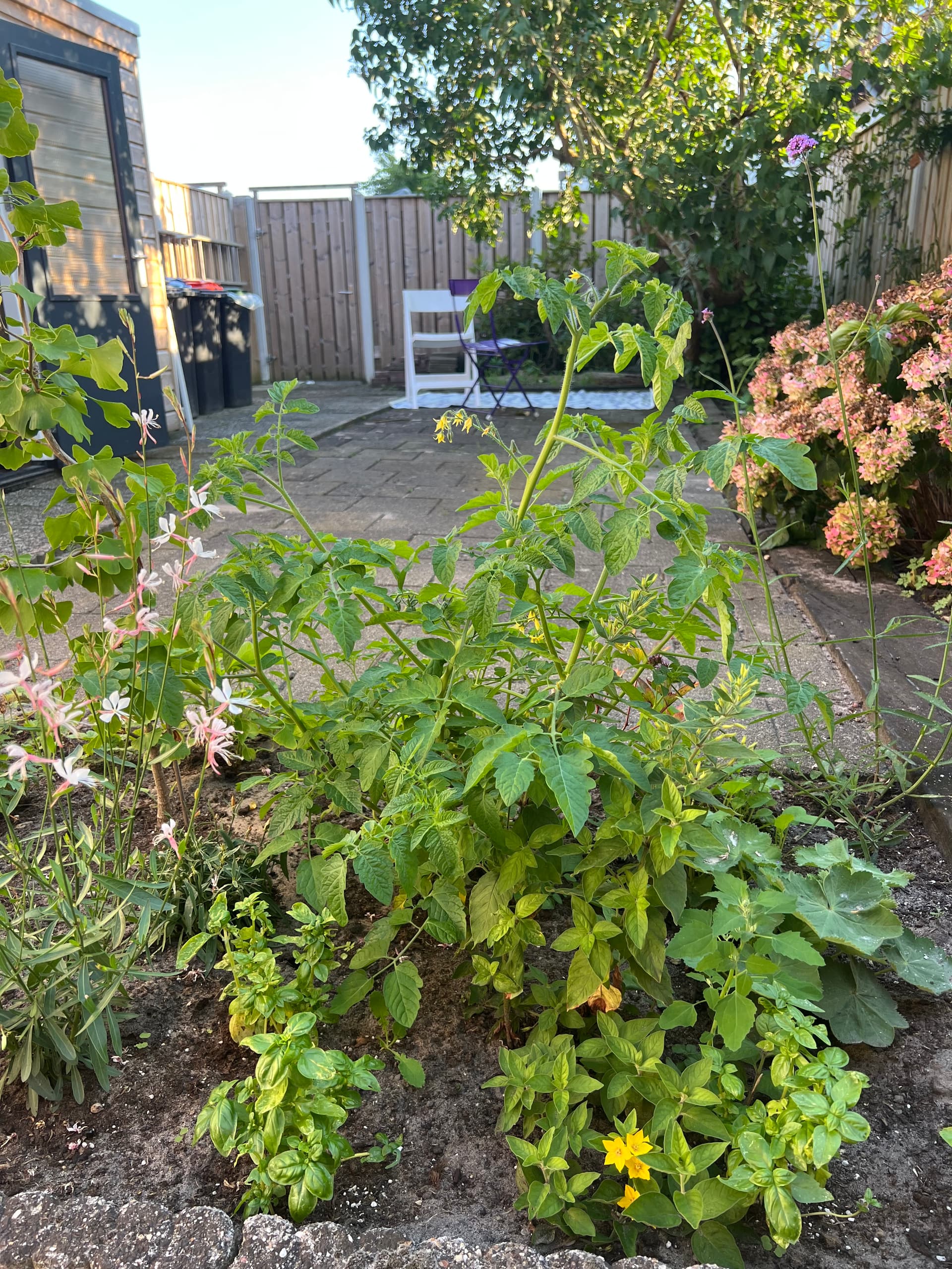 Oh een vriendin van me begon over het dieven van tomatenplanten? Maar na wat opgezocht te hebben. hoeft dat blijkbaar niet bij breedgroeiende soorten, zou die van mij zo’n soort zijn? Lijkt me we toch, volgens mij groeit 'ie vooral ook in de breedte? Wat denken jullie? ![]()