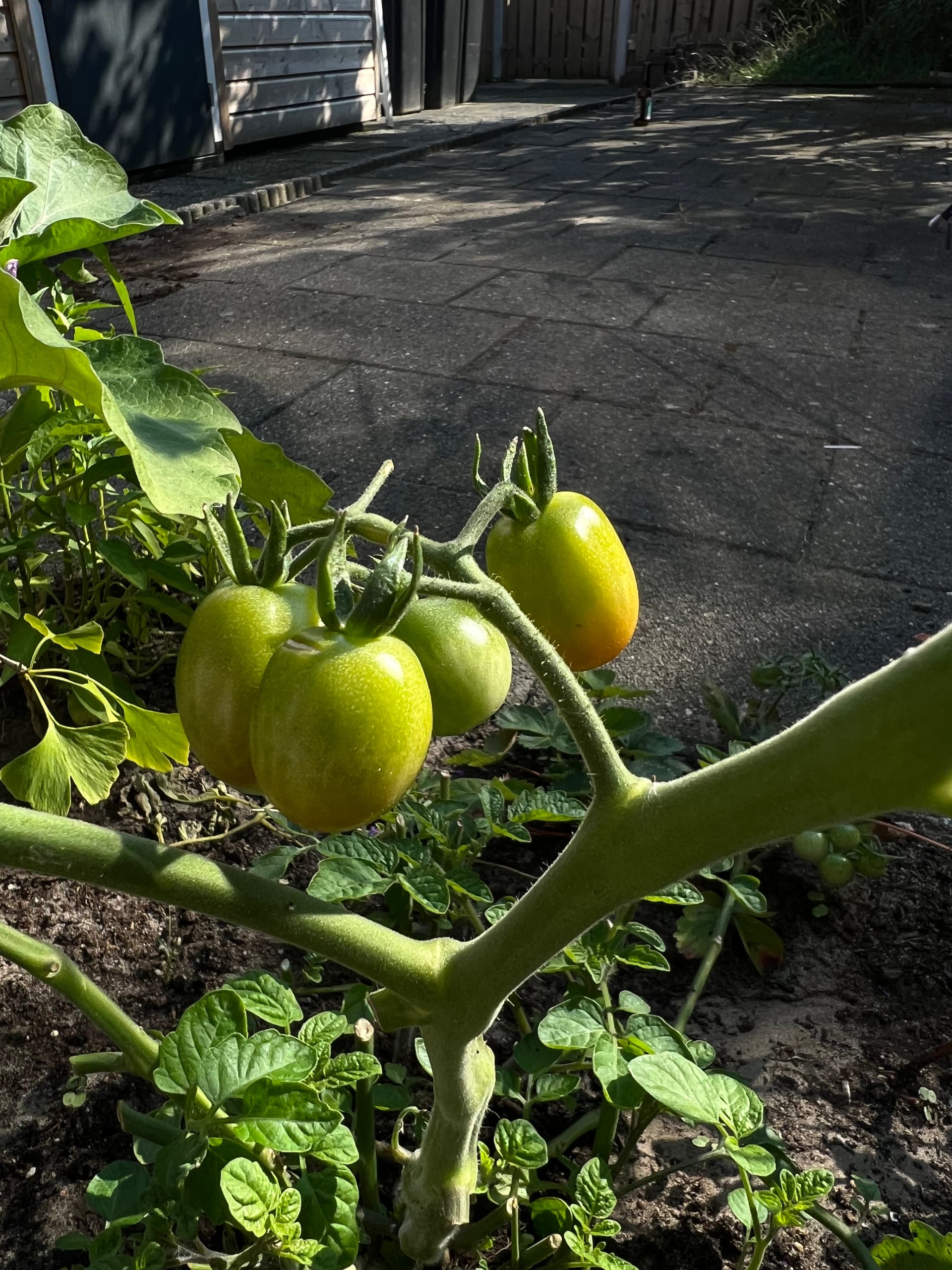 Wij hebben veel tomaten verloren aan de tomatenziekte. Ben nu elke keer mega blij met een verkleurde tomaat hahaha