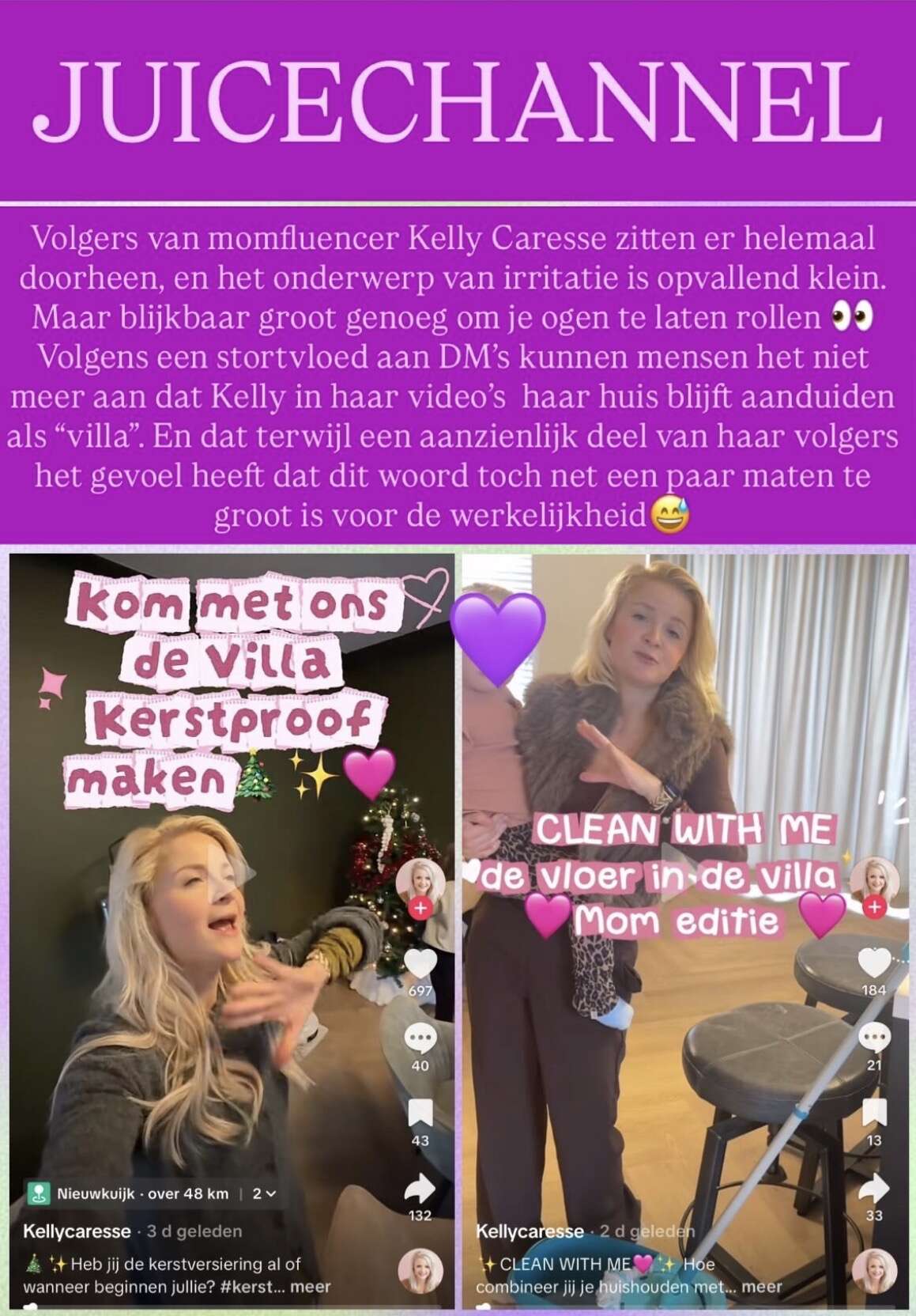 Sowieso dat Kelly dit helemaal leuk vindt dat ze genoemd wordt door een juicechannel