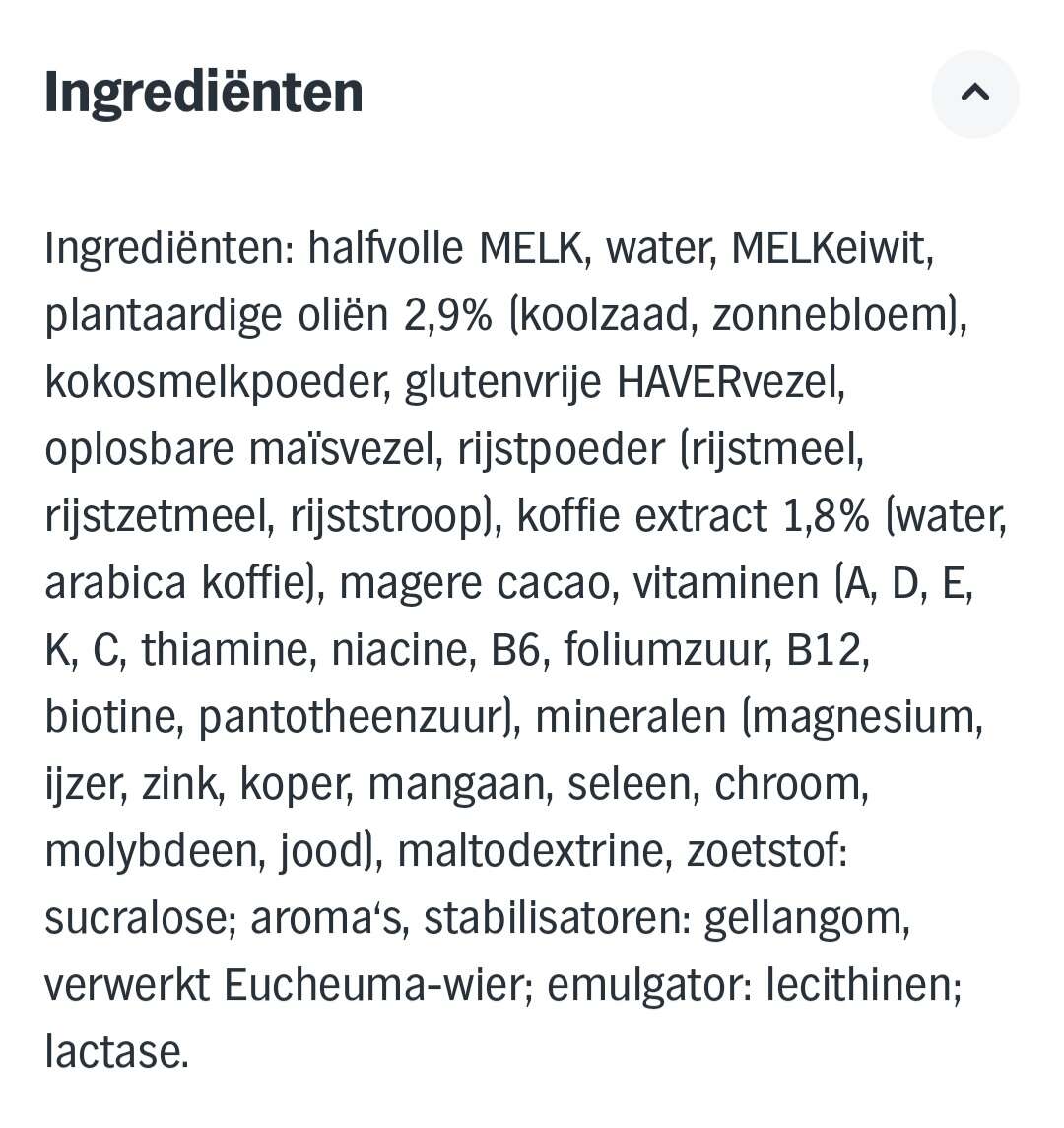 Lees de toegevoegde suikers. Correctie: zoetstof. Ik vond jouw vergelijking met ‘in melk zit ook suiker’ raar. Dit is toch niet te vergelijken?