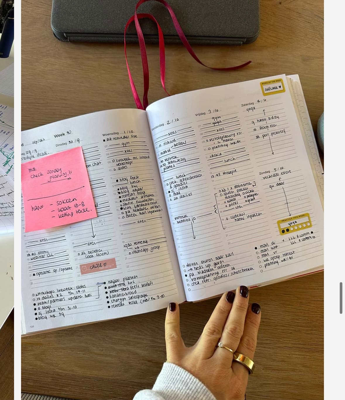 Was die vrouw helemaal vergeten maar heb net haar twee laatste posts gelezen. Ik blijf niet snappen dat iemand die zichzelf structuurjunkie noemt en zich laat voorstaan op efficiency hele weekplanningen neerpent ipv haar agenda/afspraken digitaliseert. Als iemand zich geroepen voelt om een poll te plaatsen, ik ben wel benieuwd hoeveel mensen op het forum dat doen. Zo teringveel werk?!