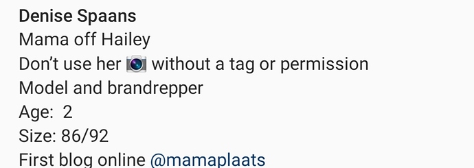 Haha ook echt die kledingmaat van haar kind erbij.