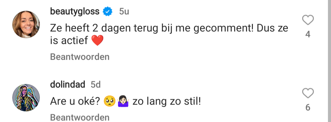 Mascha heeft in dit topic gelezen dat Shifra 2 dagen geleden nog heeft gereageerd op haar Insta post, dus all good ![]()