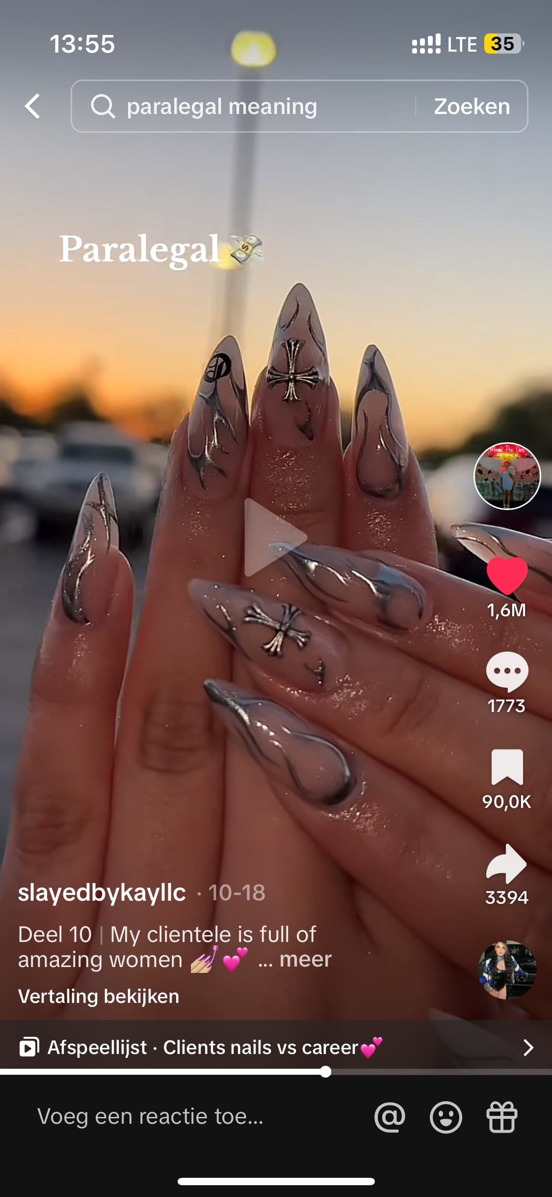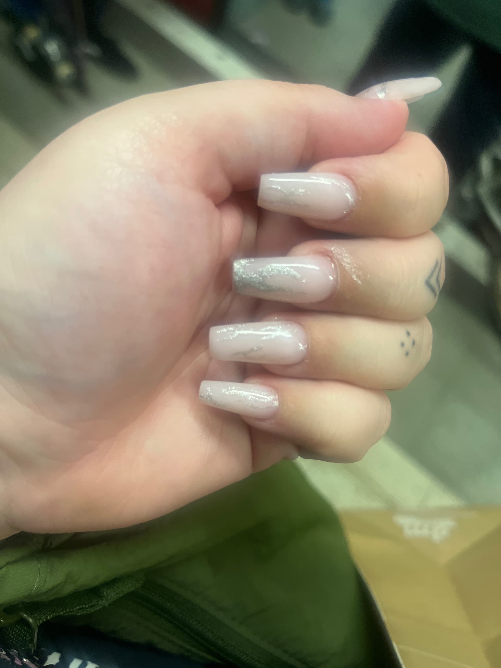 Ja zeker chrome poeder maar ik liet dat plaatje zien en toen knikten ze dus toen dacht ik dat ze het wel konden en snapten, maar toen hij met de nail art begon haalde hij er een klein flesje bij en toen dacht ik al oh nee dit wordt niks… Maar ik had ook geen zin meer om stop te zeggen want dan moest ik weer wat anders bedenken ![]()