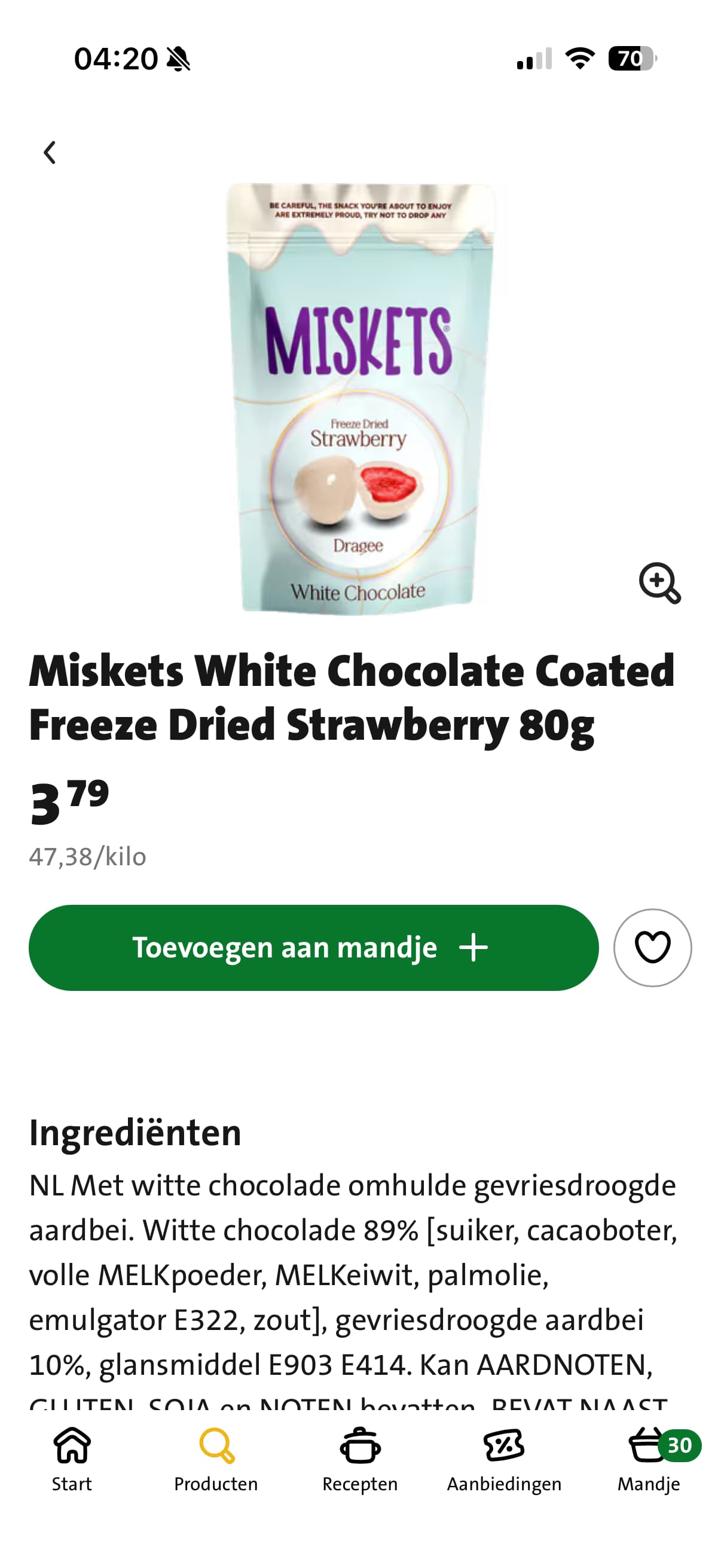 Miskets freeze dried strawberry 80gram €3,79