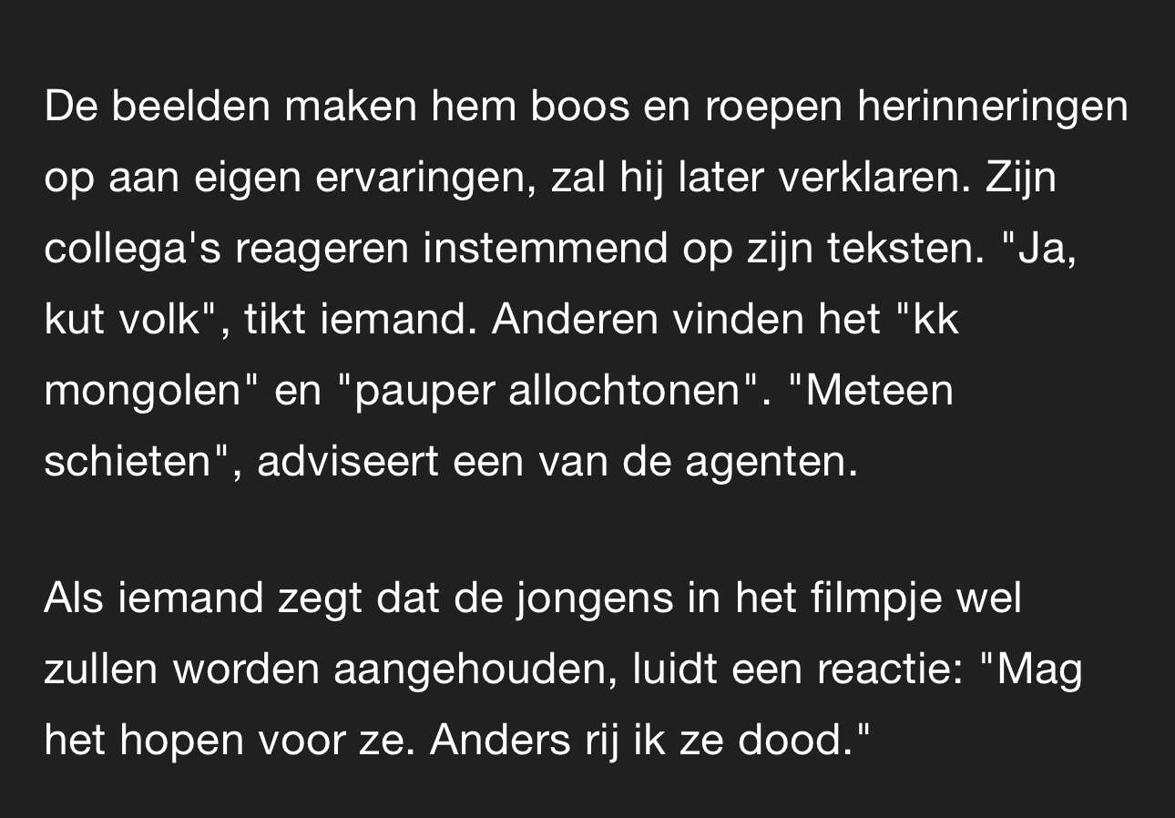 De toelichting staat o.a. een paar posts erboven in de post van @Bunnyslippers , en er zijn genoeg van dat soort dingen naar buiten gekomen in de afgelopen jaren. Tel daarbij op hoe de politie reageert op protesten van (extreem)rechts en boeren tegenover anti-genocideprotesten of anti-klimaatveranderingprotesten en mijn vertrouwen in de gemiddelde agent is niet-bestaand.